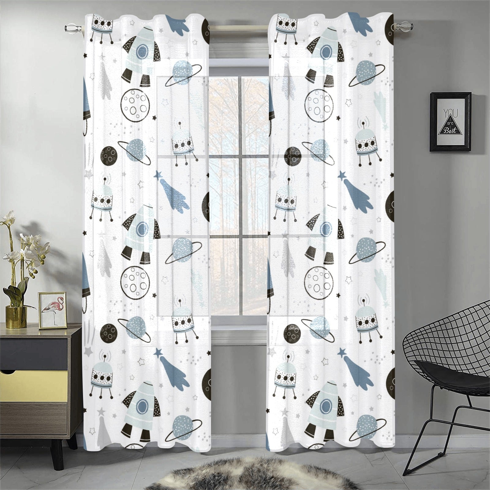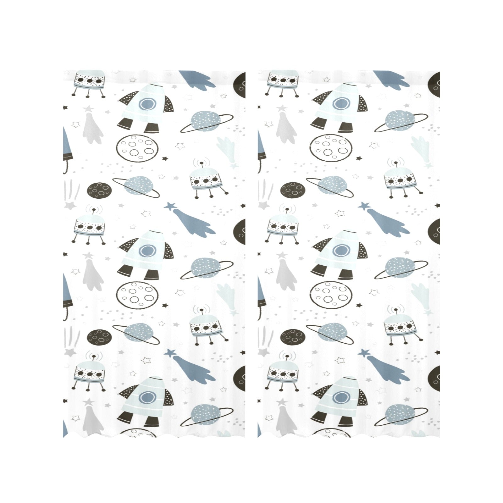 Hand drawn space elements space rocket star planet Gauze Curtain
