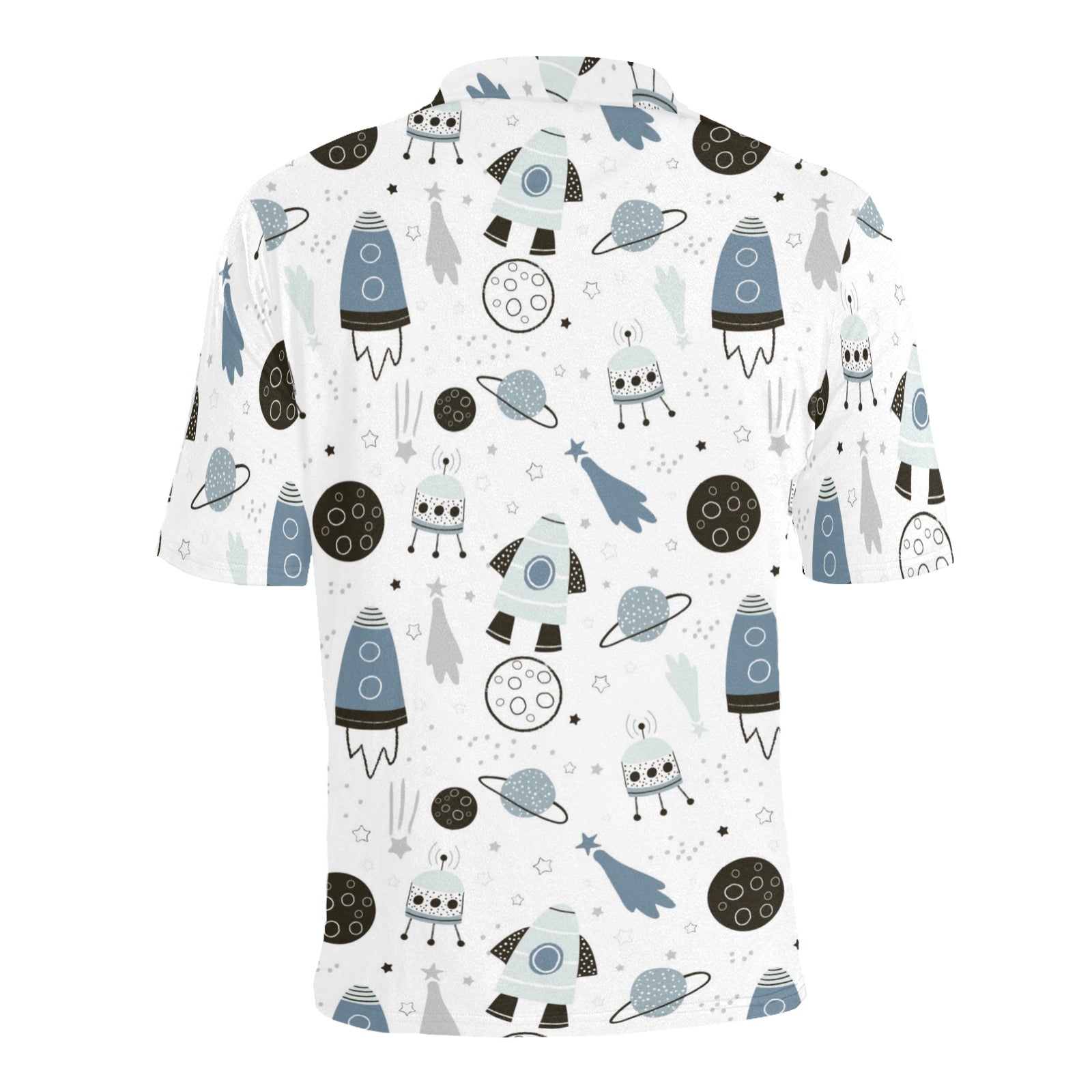 Hand drawn space elements space rocket star planet Men's All Over Print Polo Shirt
