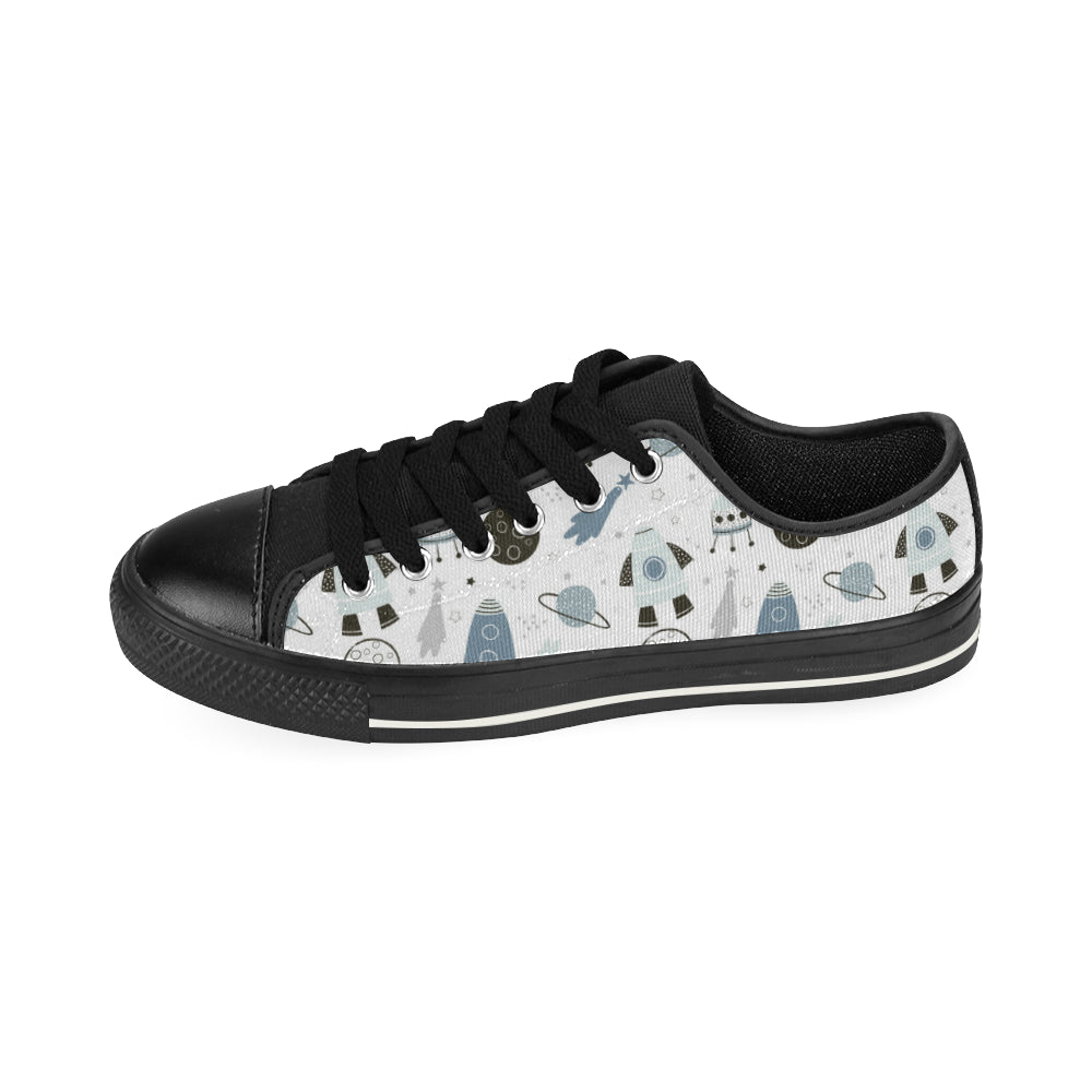 Hand drawn space elements space rocket star planet Men's Low Top Canvas Shoes Black