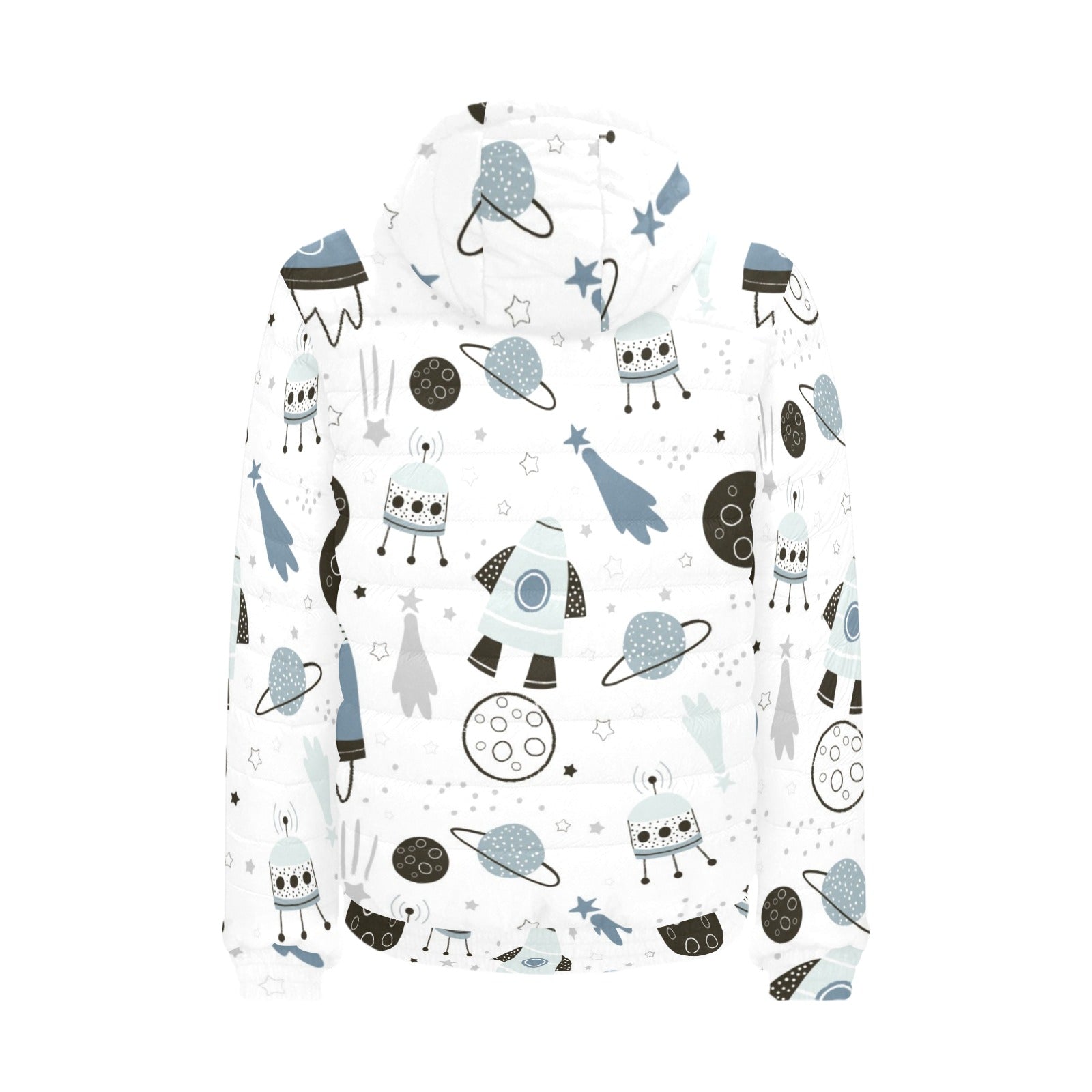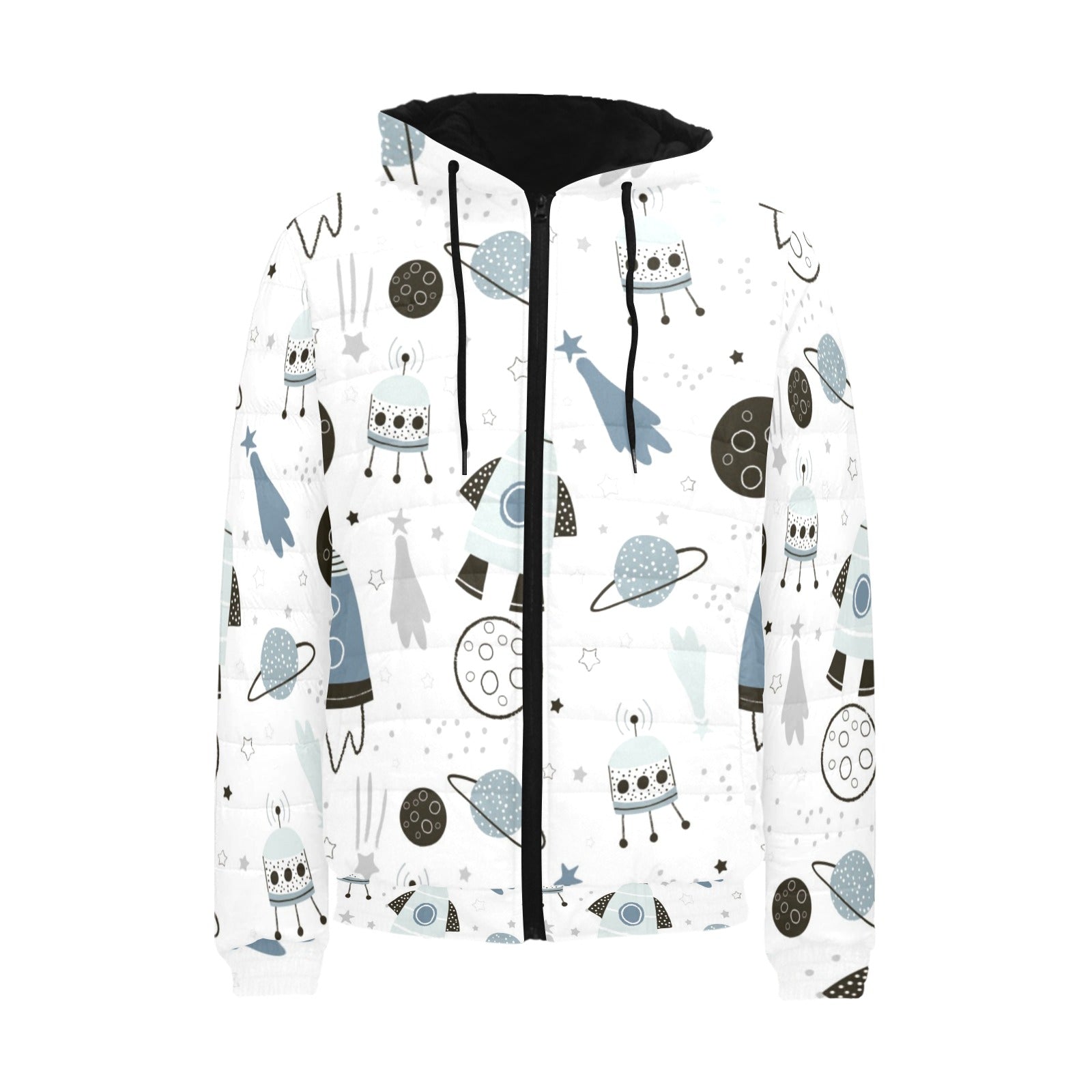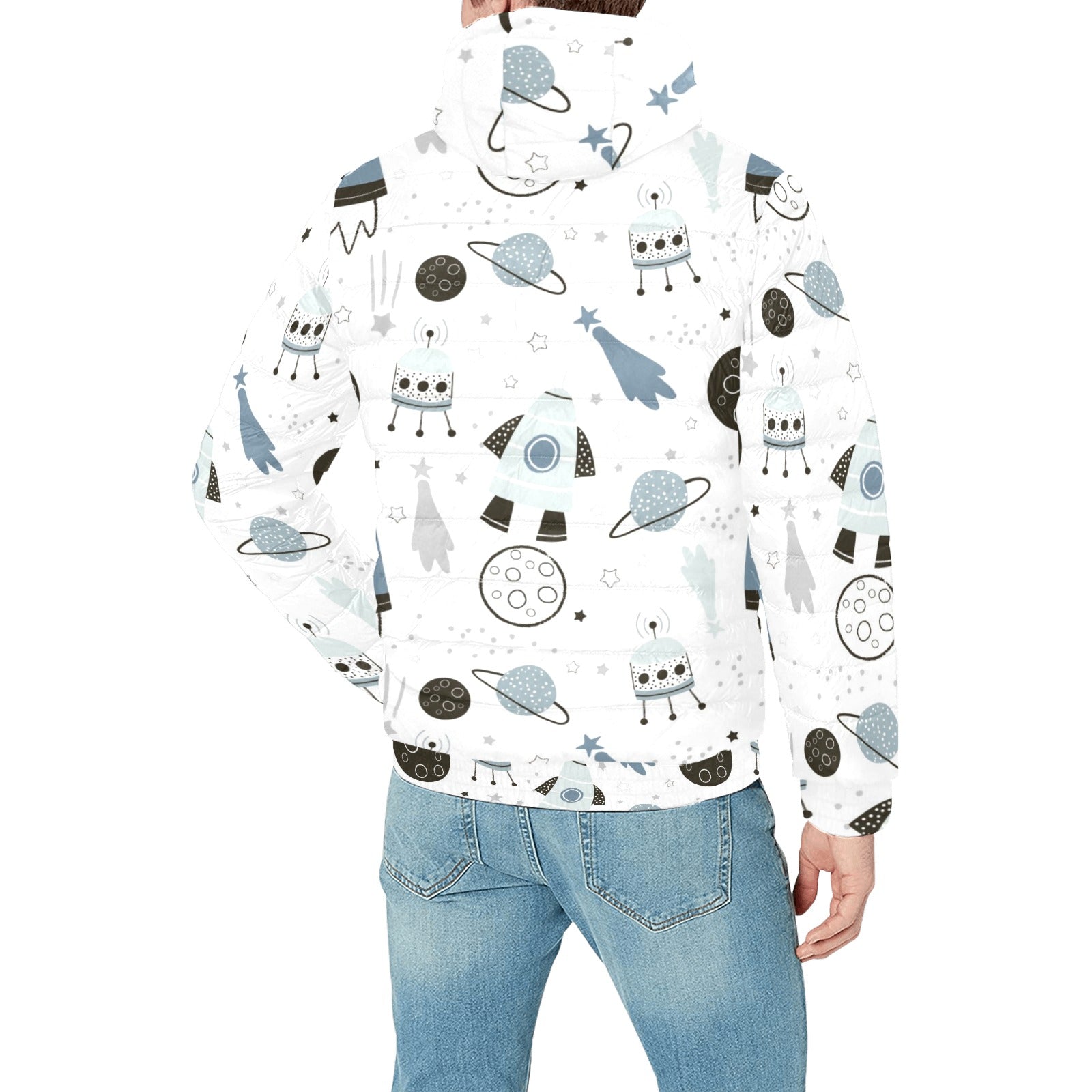 Hand drawn space elements space rocket star planet Men's Padded Hooded Jacket