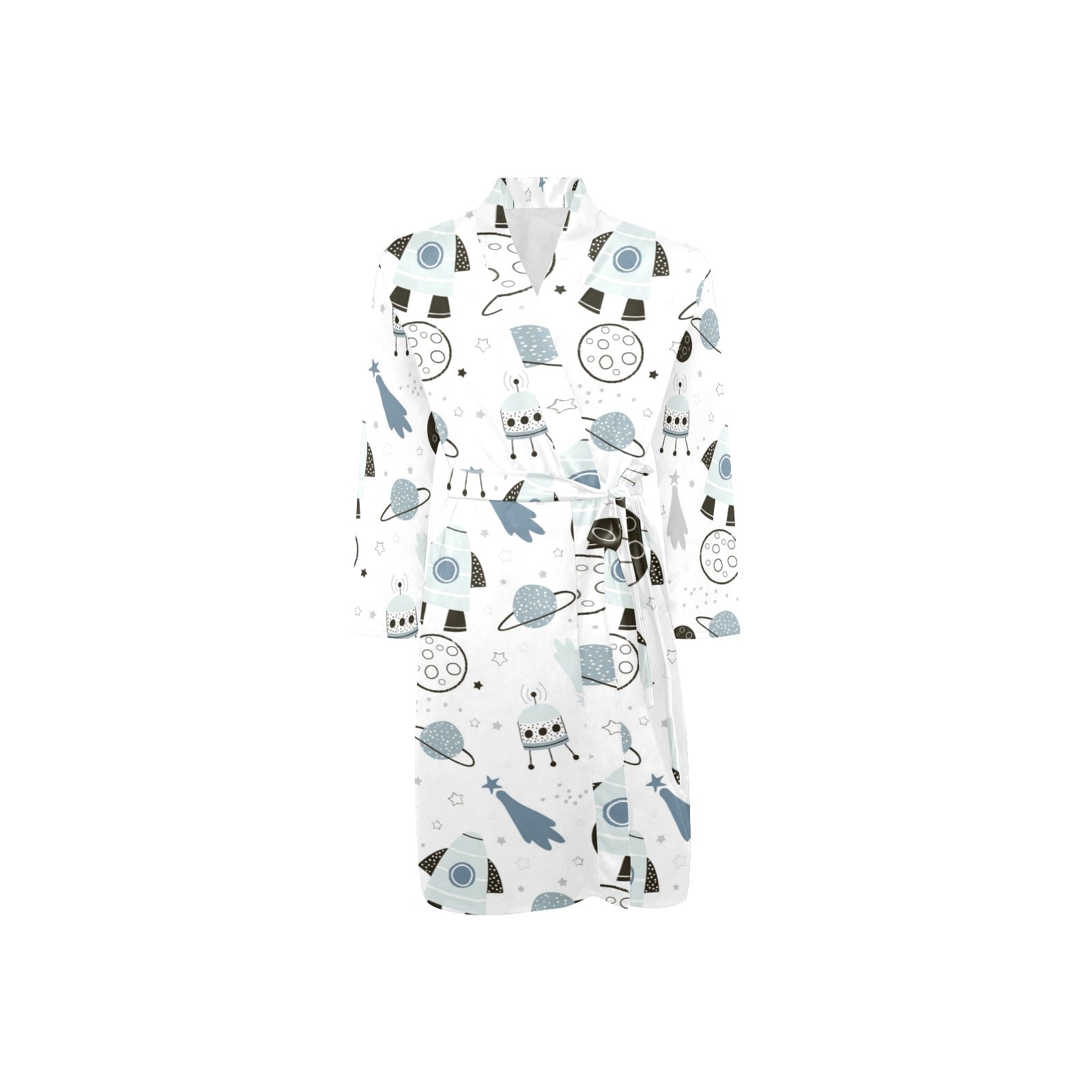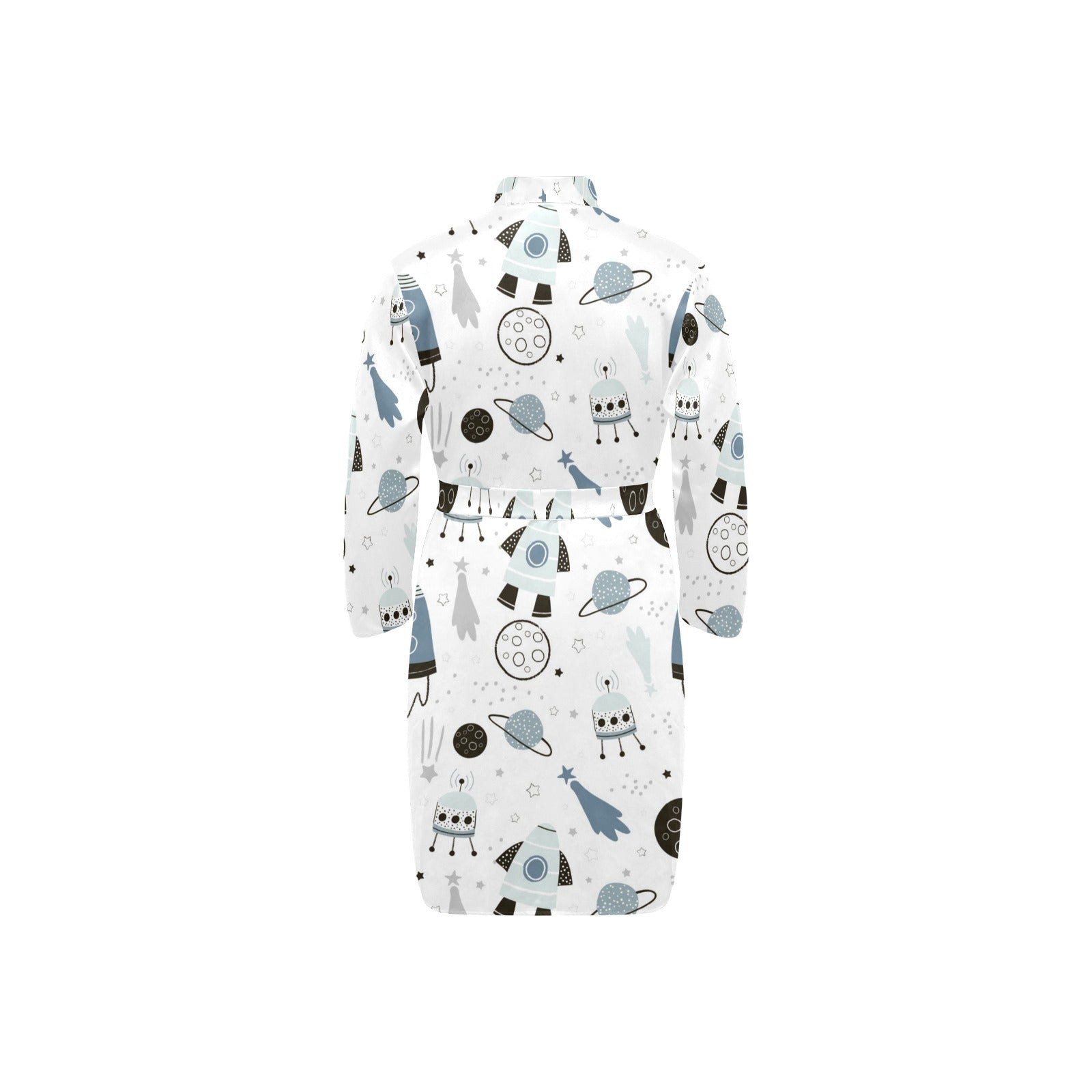 Hand drawn space elements space rocket star planet Men's Long Sleeve Belted Night Robe