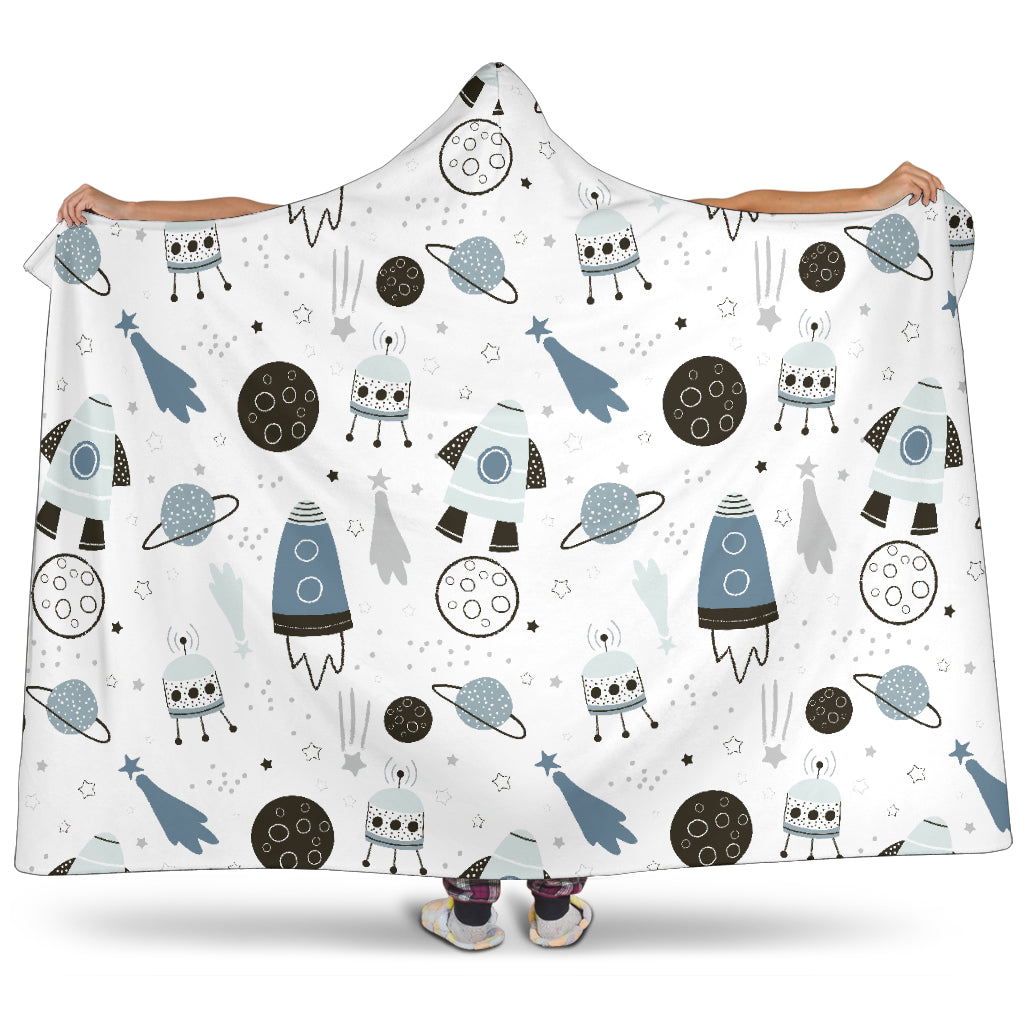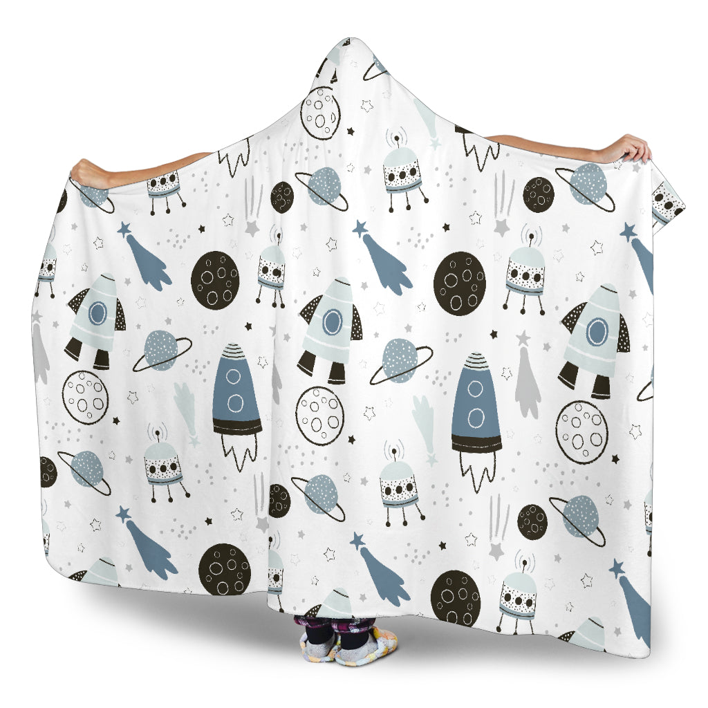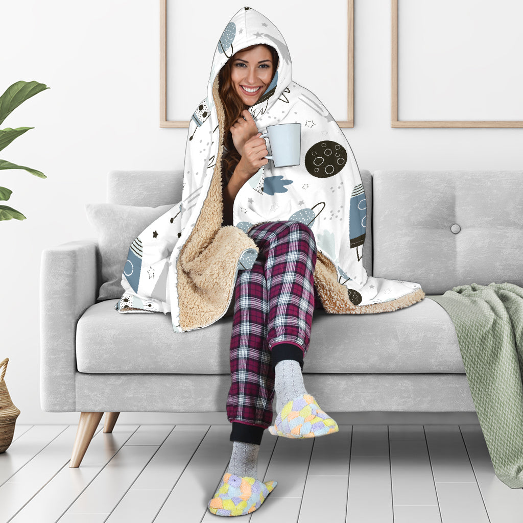 Hand drawn space elements space rocket star planet space probe Hooded Blanket are custom-made-to-order and handcrafted to the highest quality standards.