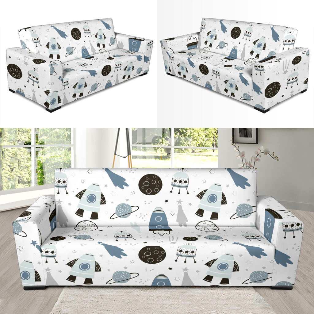 Hand drawn space elements space rocket star planet space probe Sofa Slipcover is a uniqued design and limited item. It made to order, hand printed, and sewn with love in our factory.