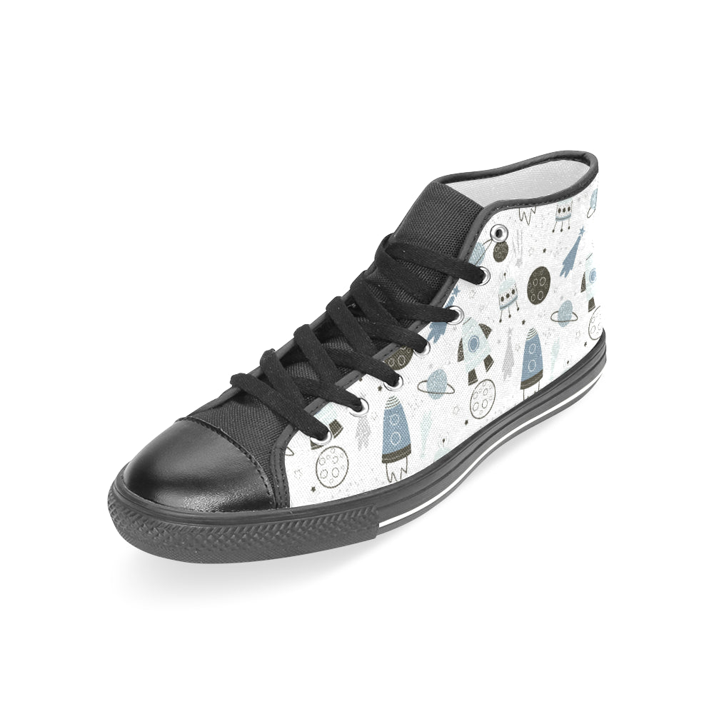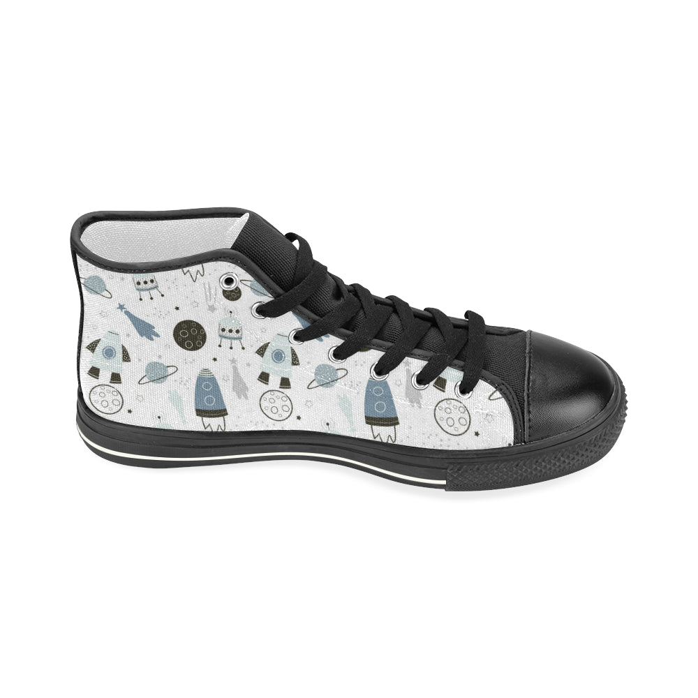 Hand drawn space elements space rocket star planet Women's High Top Canvas Shoes Black