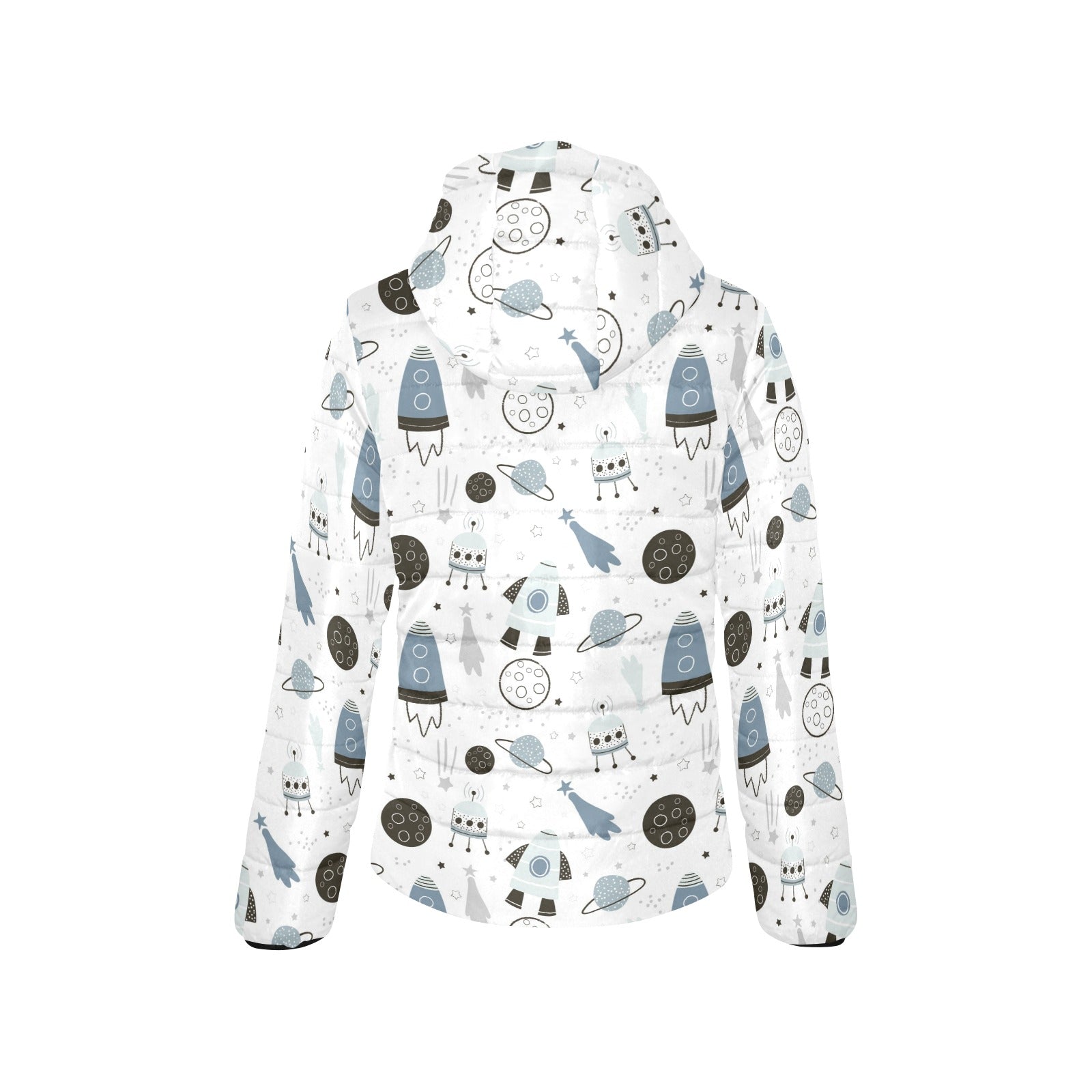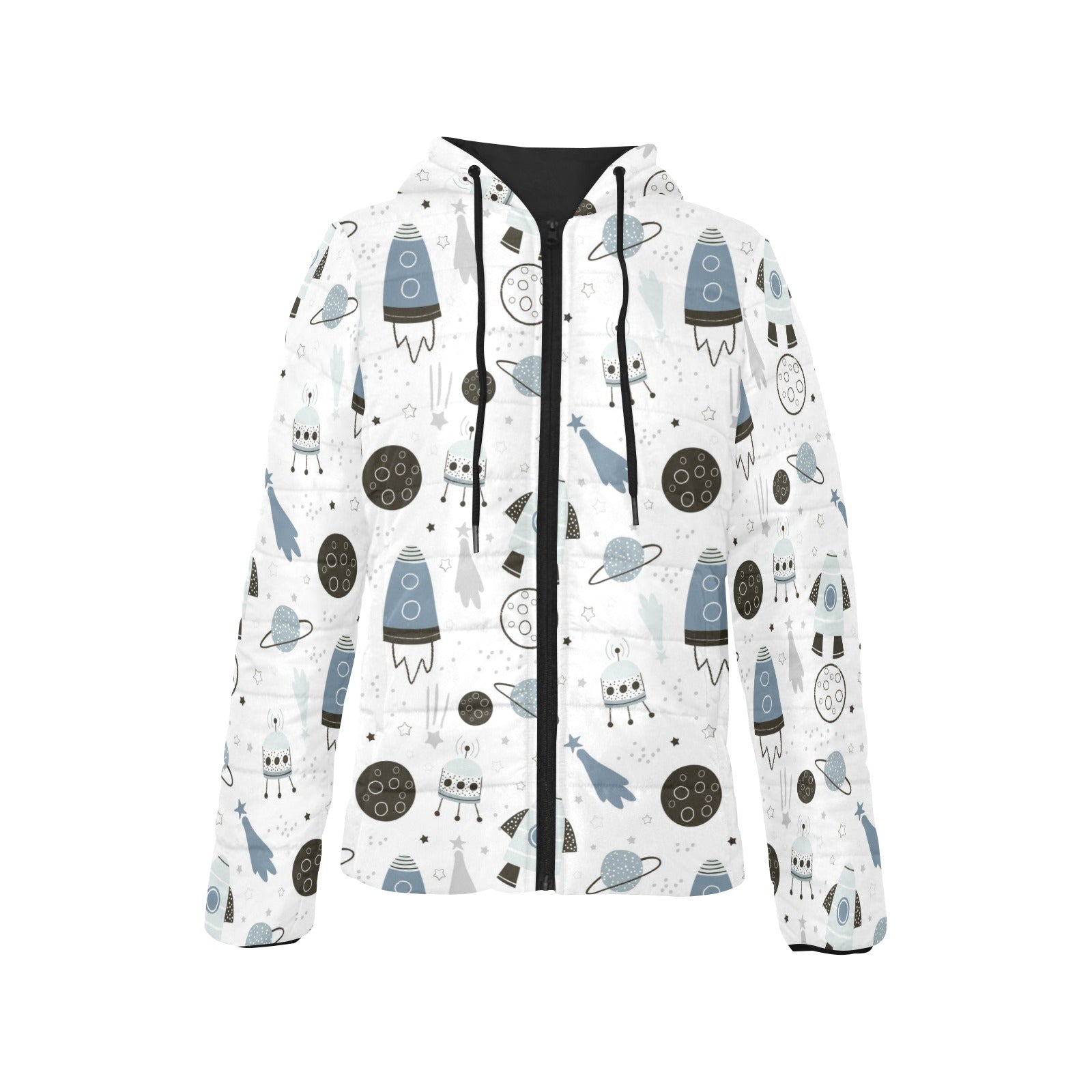 Hand drawn space elements space rocket star planet Women's Padded Hooded Jacket