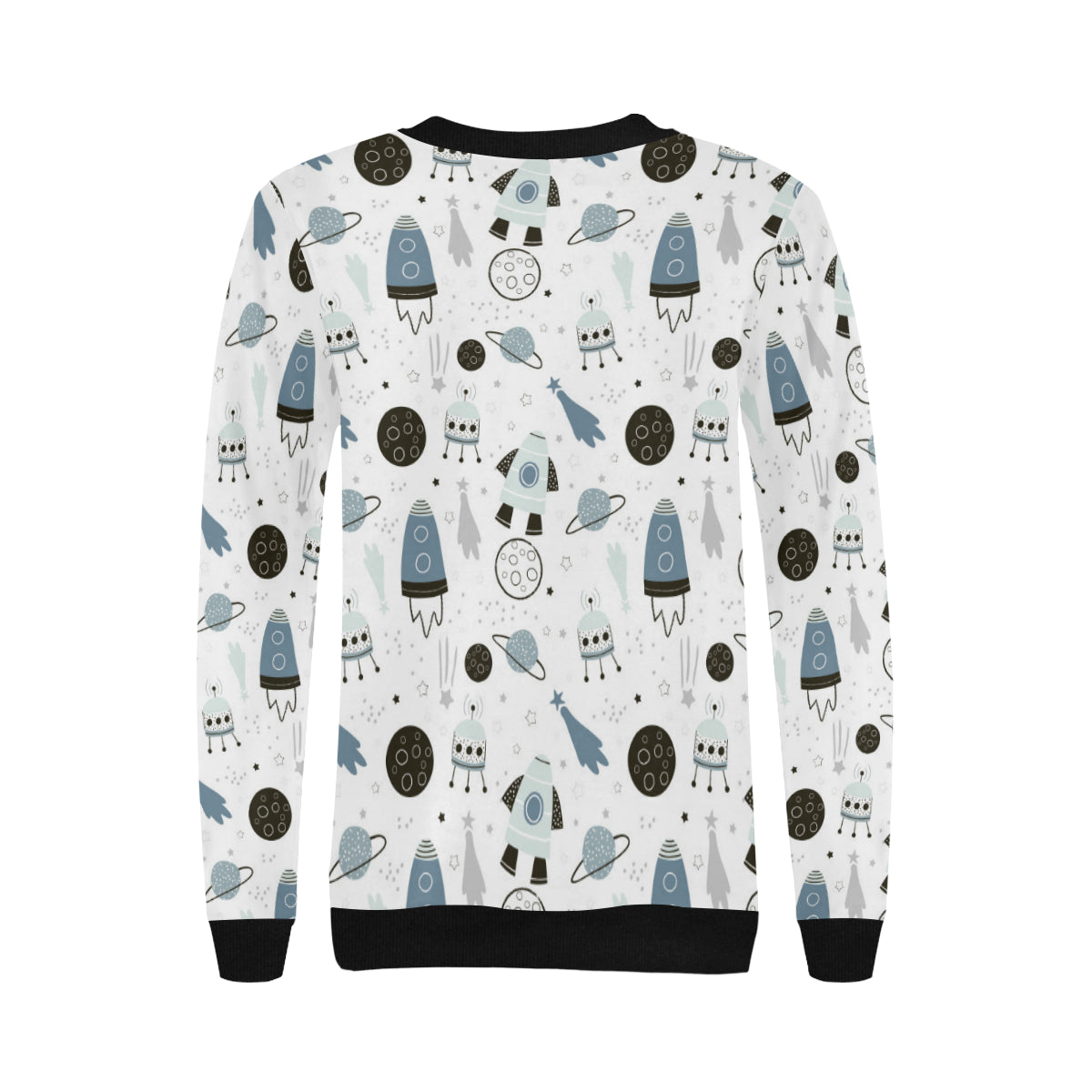 Hand drawn space elements space rocket star planet Women's Crew Neck Sweatshirt