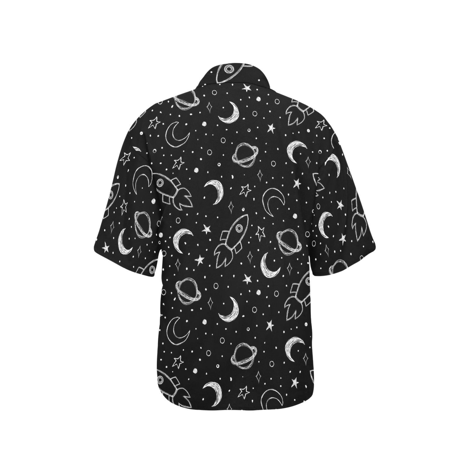 Hand drawn space rocket star planet Women's All Over Print Hawaiian Shirt