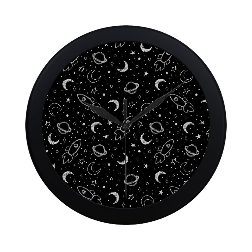 Hand drawn space rocket star planet Elegant Black Wall Clock