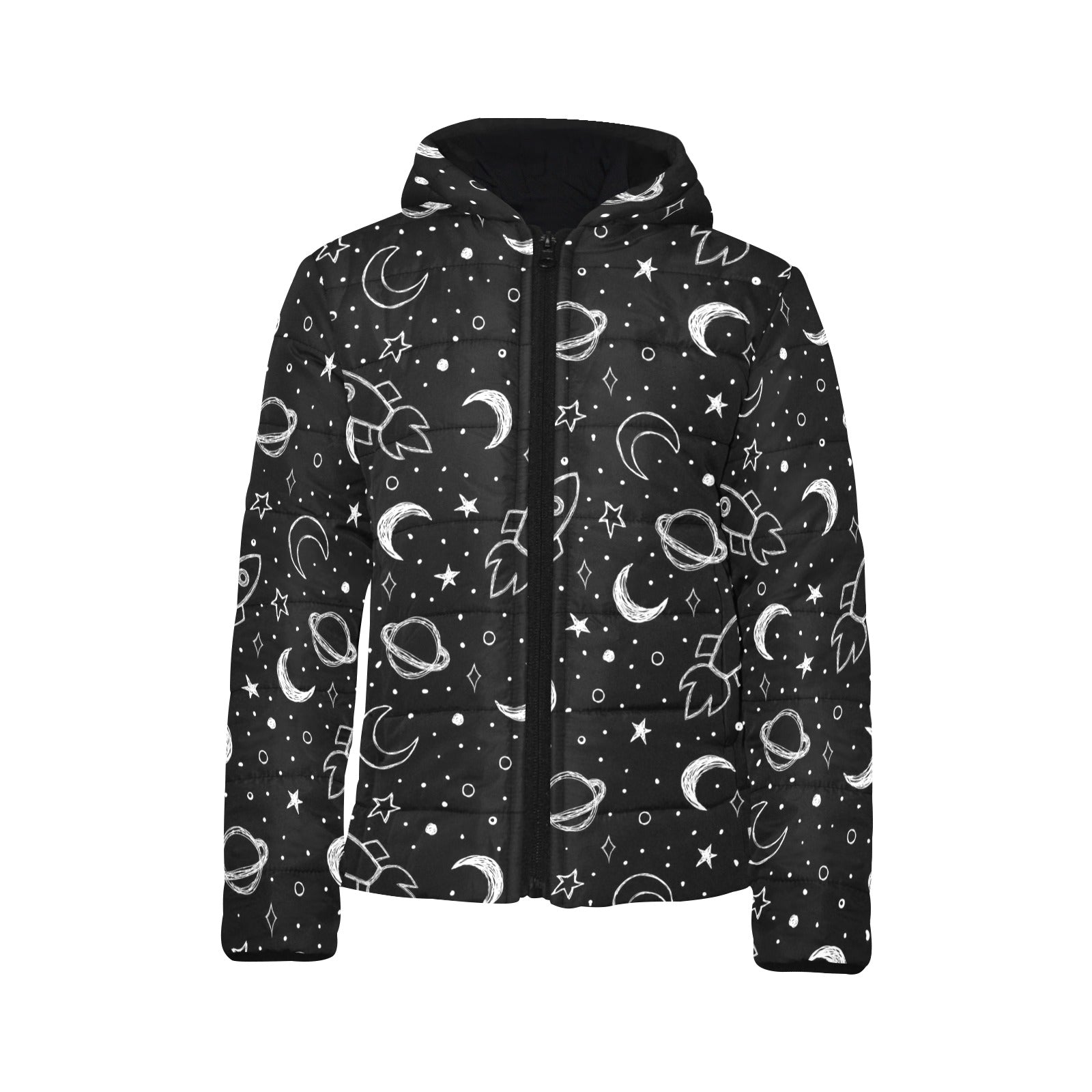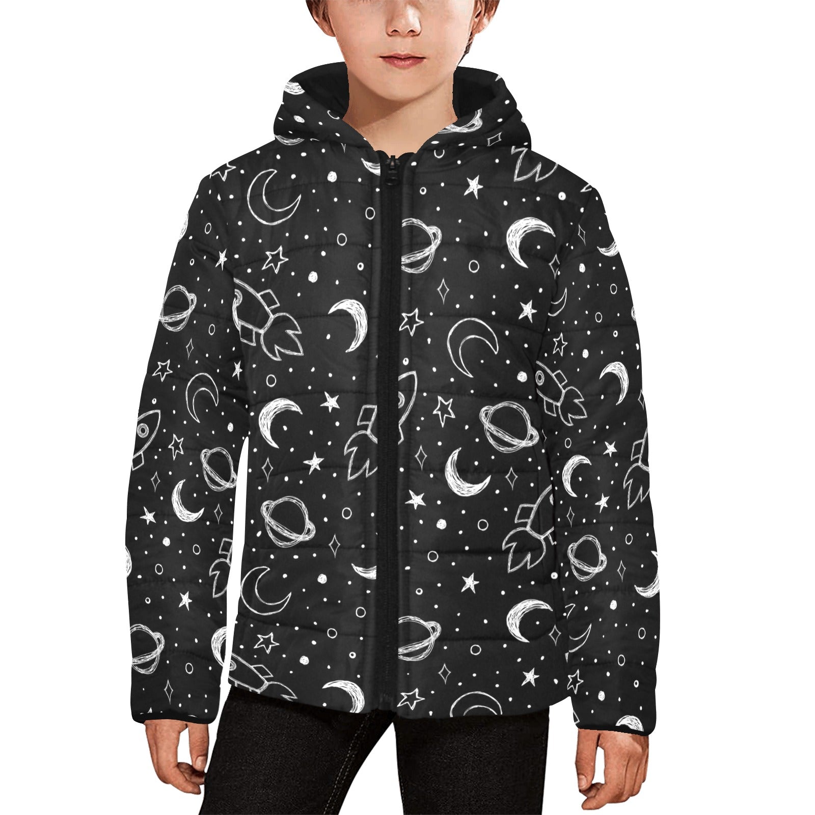 Hand drawn space rocket star planet Kids' Boys' Girls' Padded Hooded Jacket