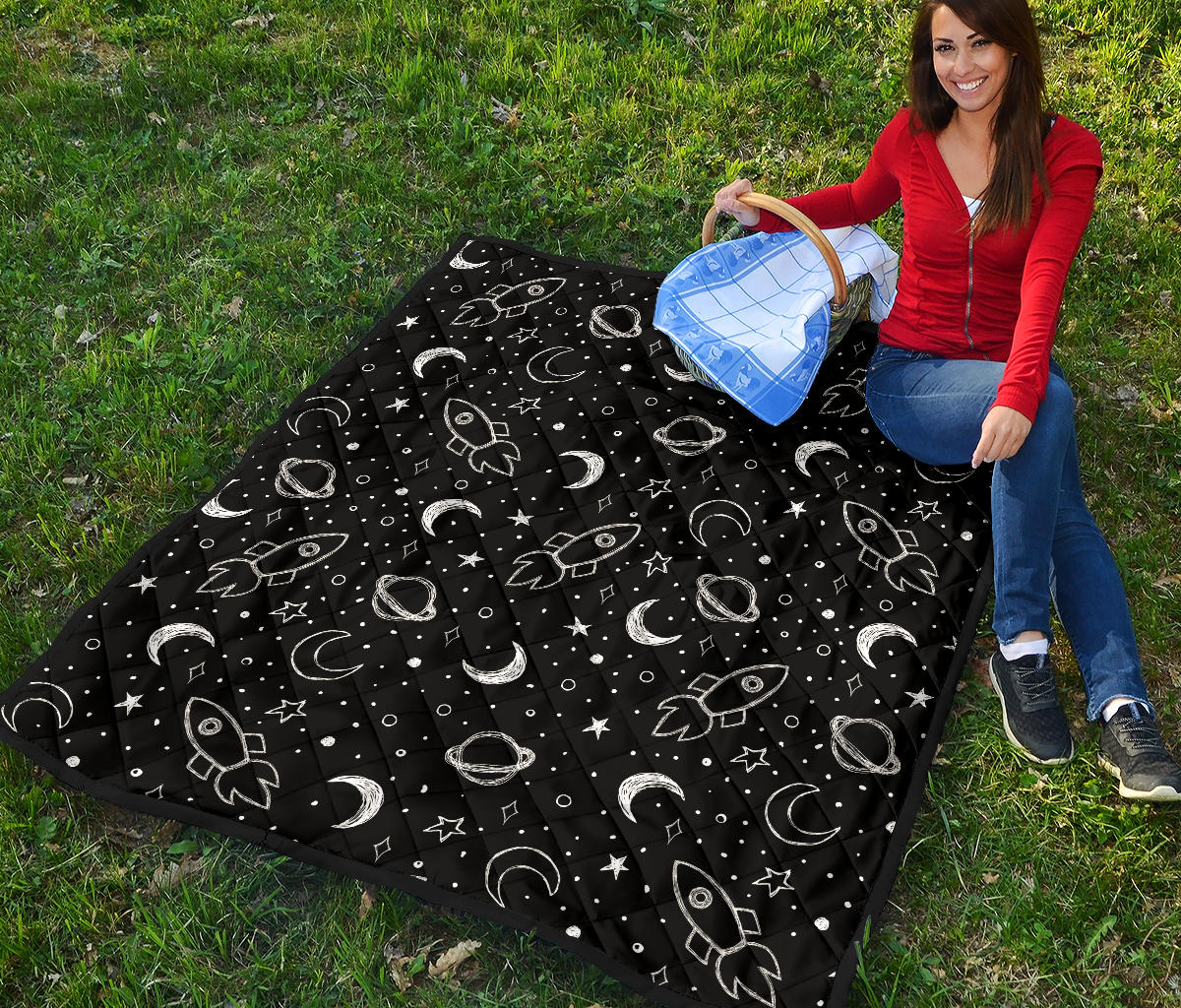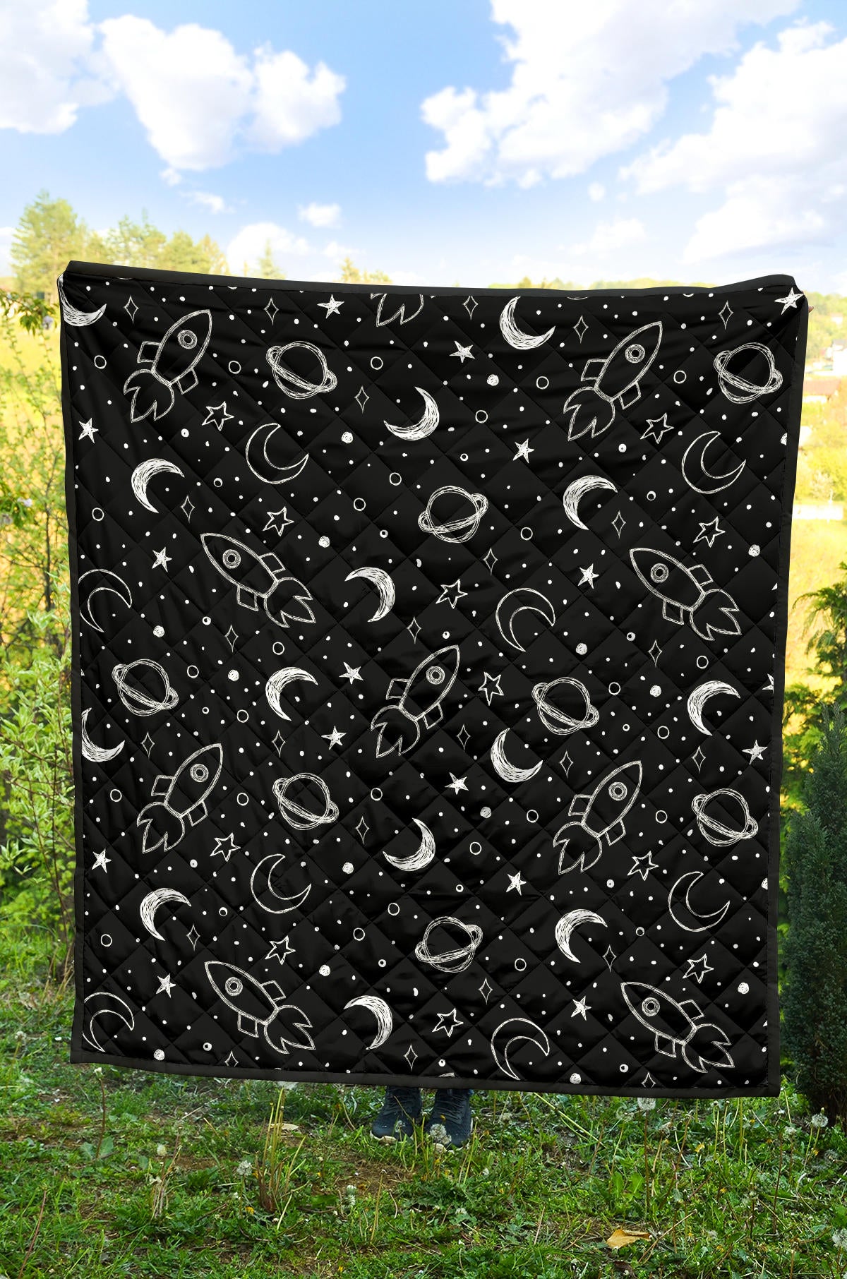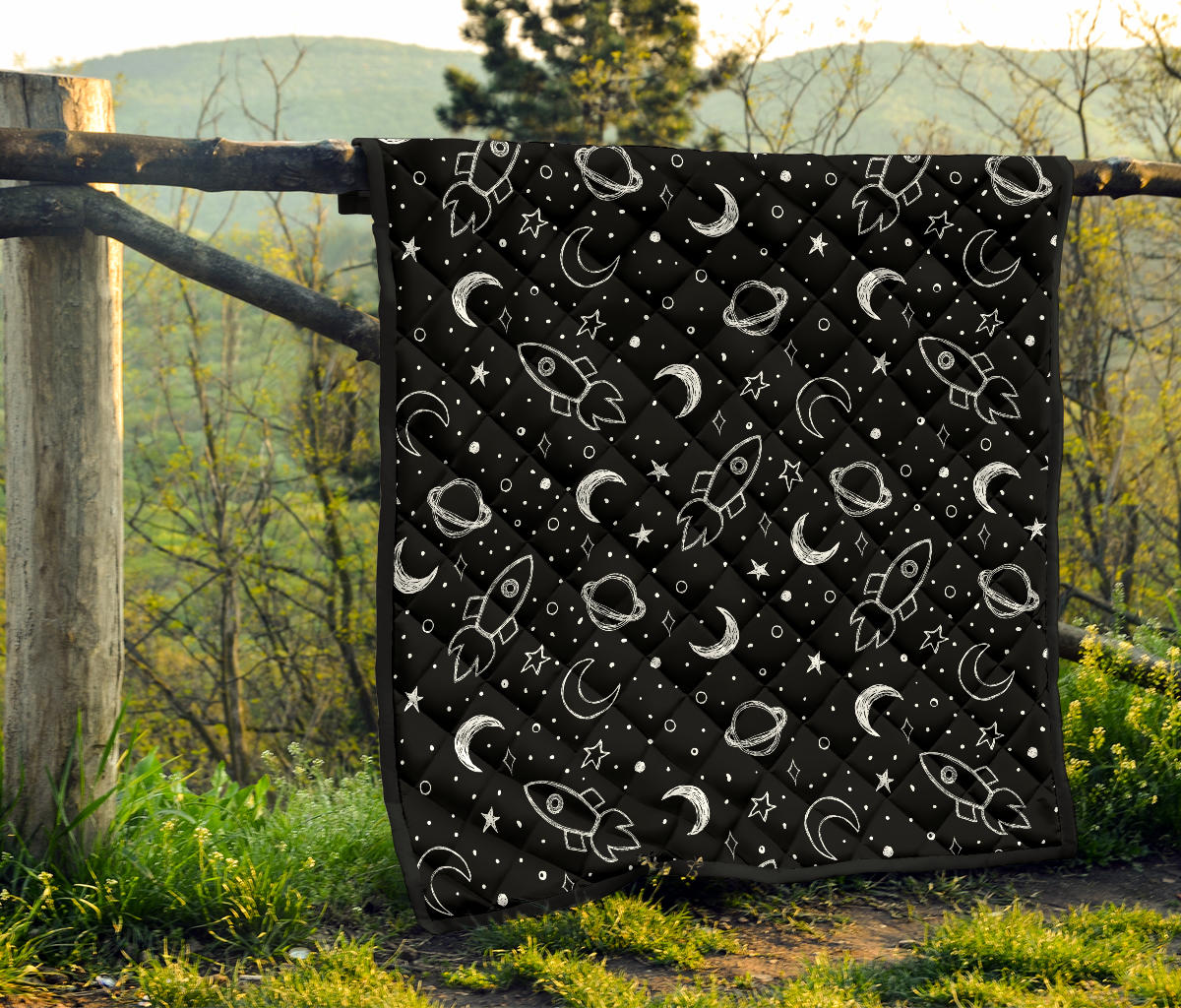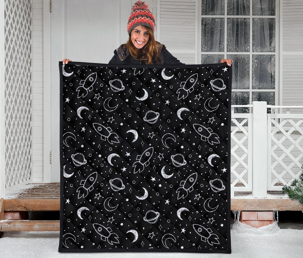 Hand Drawn Space Rocket Star Planet Premium Quilt is a uniqued design and limited item. It made to order, hand printed, and sewn with love in our factory.