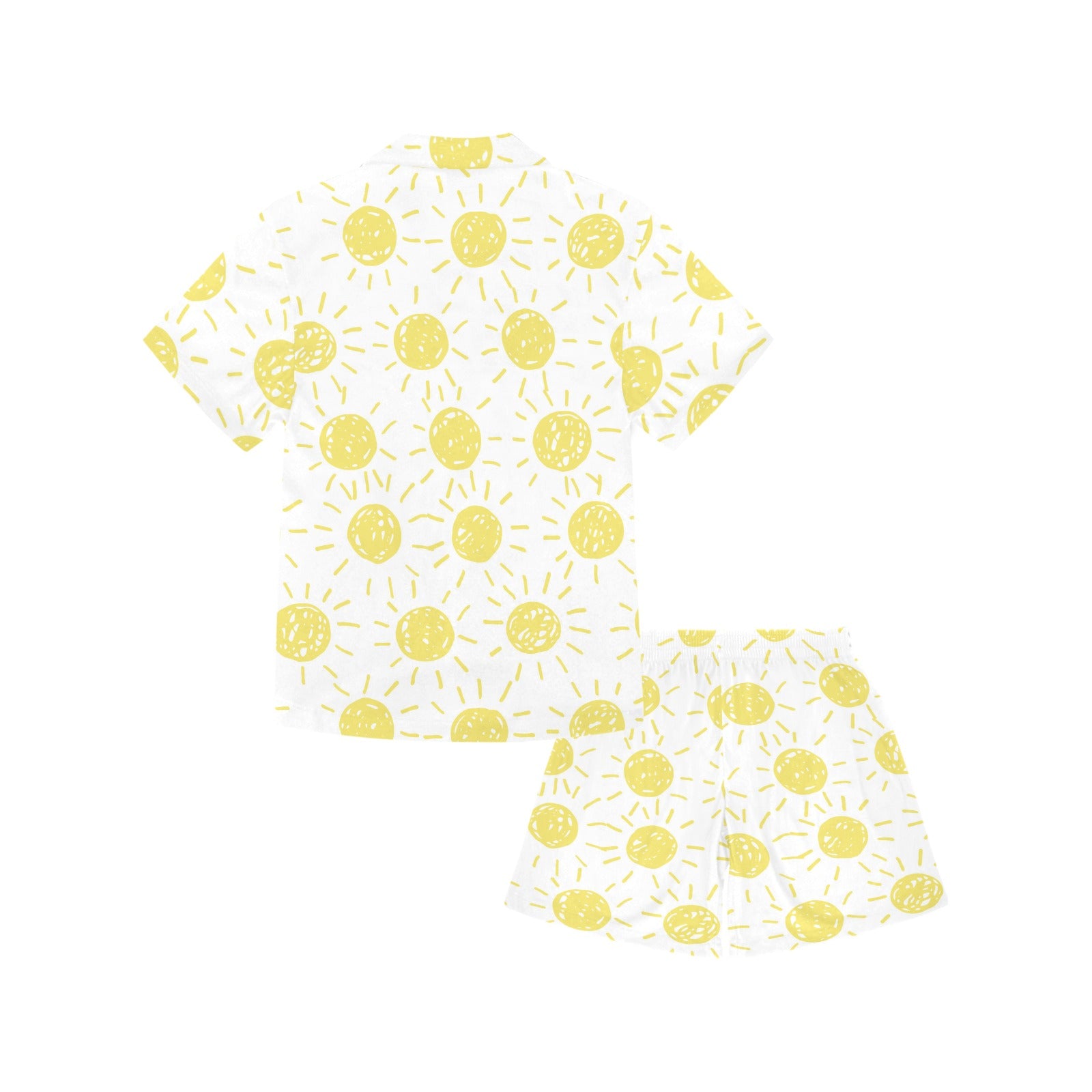 hand drawn sun pattern Kids' Boys' Girls' V-Neck Short Pajama Set