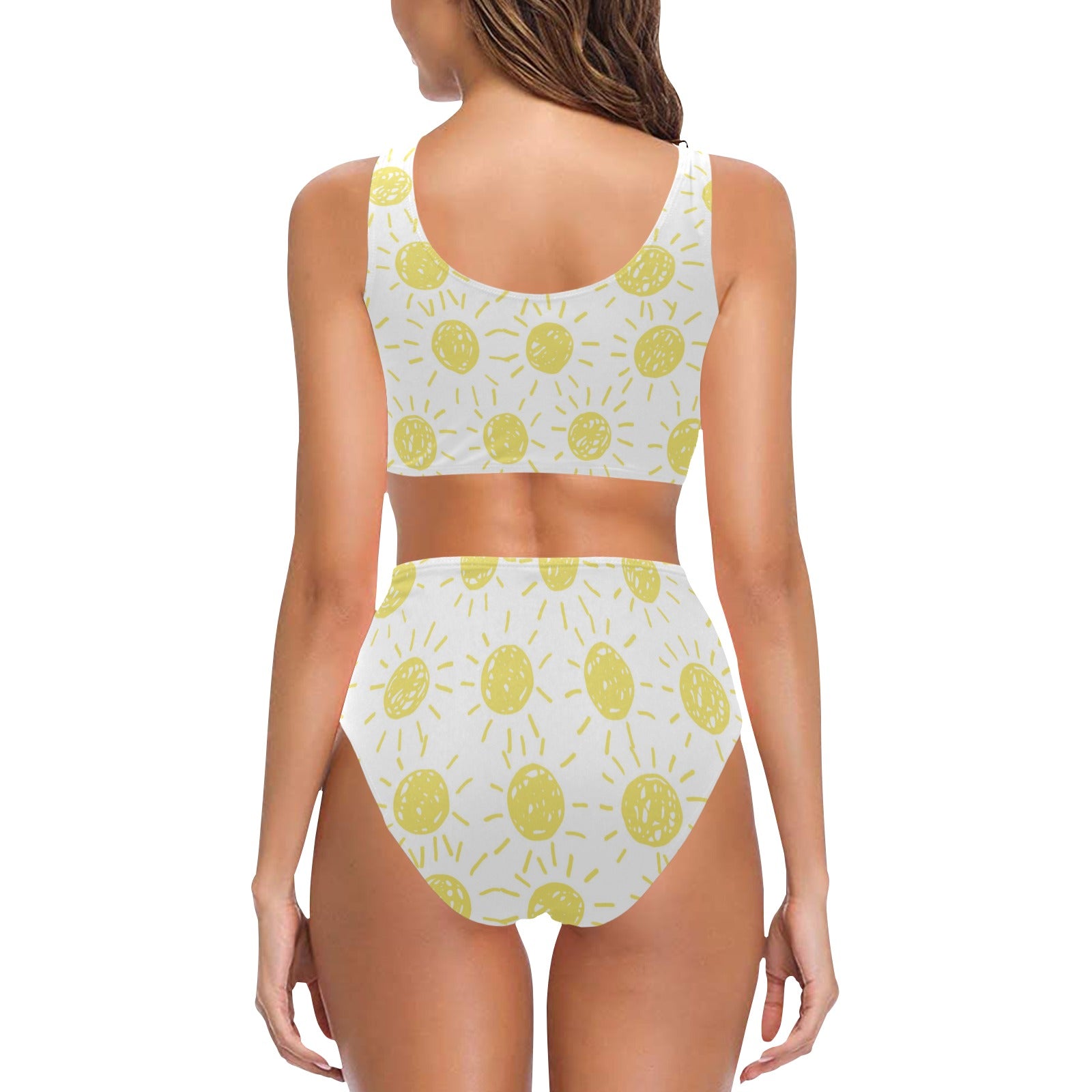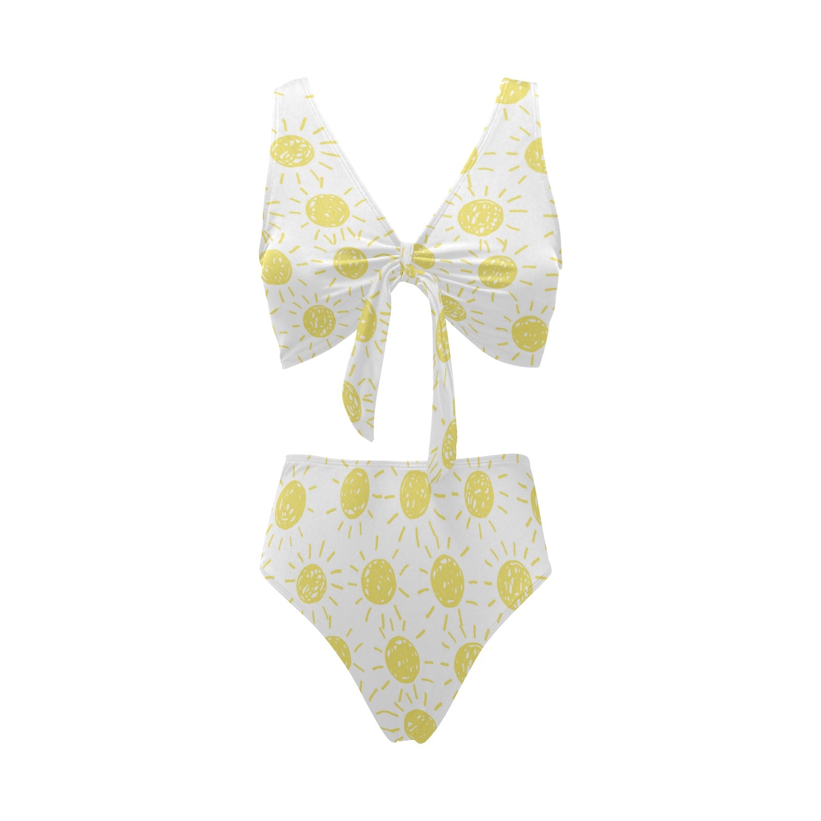 hand drawn sun pattern Chest Bowknot High Waisted Bikini Swimsuit