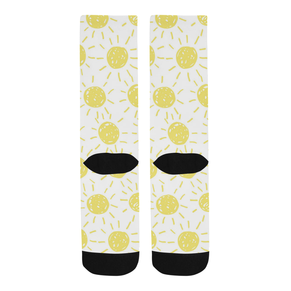hand drawn sun pattern Crew Socks are uniqued design and limited item. It made to order, hand printed, and sewn with love in our factory.