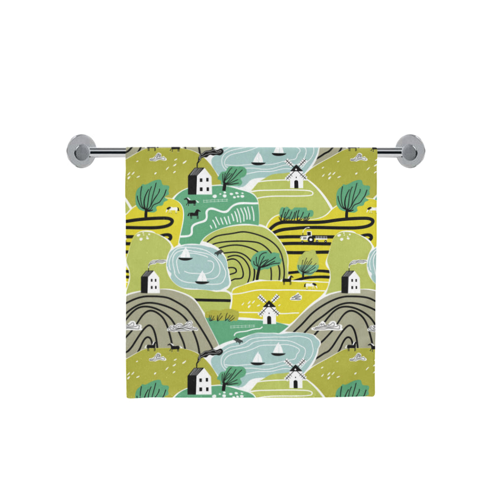 Hand drawn windmill pattern Bath Towel 30"x56" is a uniqued design and limited item. It made to order, hand printed, and sewn with love in our factory.