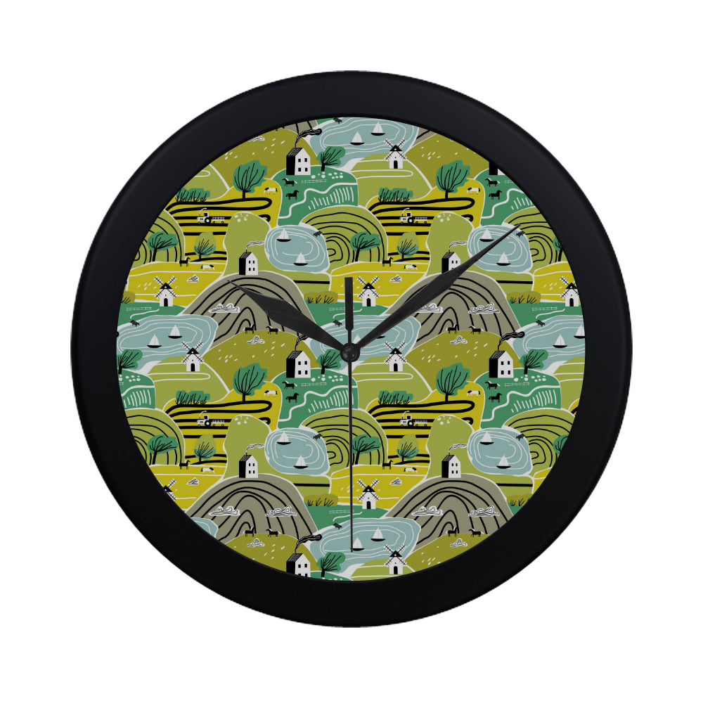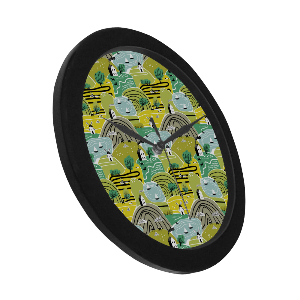Hand drawn windmill pattern Elegant Black Wall Clock