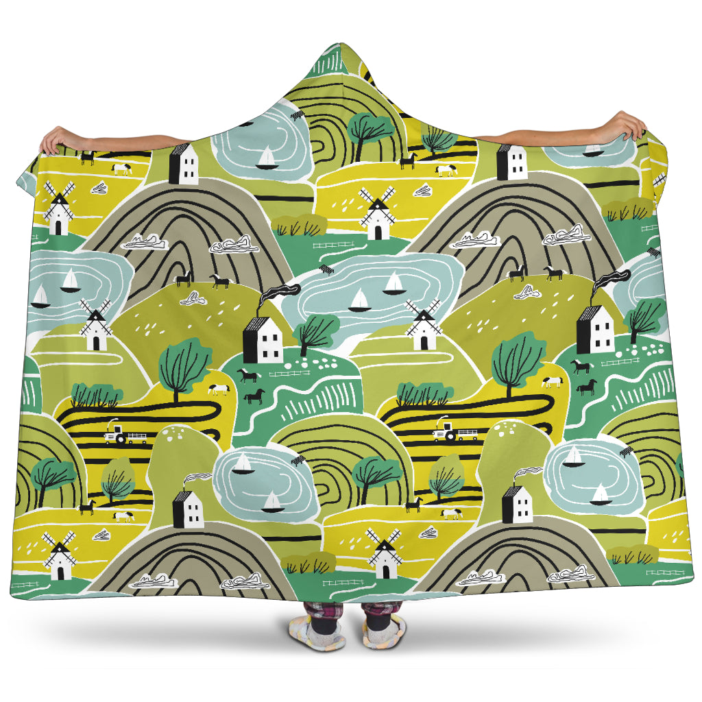 Hand drawn windmill pattern Hooded Blanket are custom-made-to-order and handcrafted to the highest quality standards.