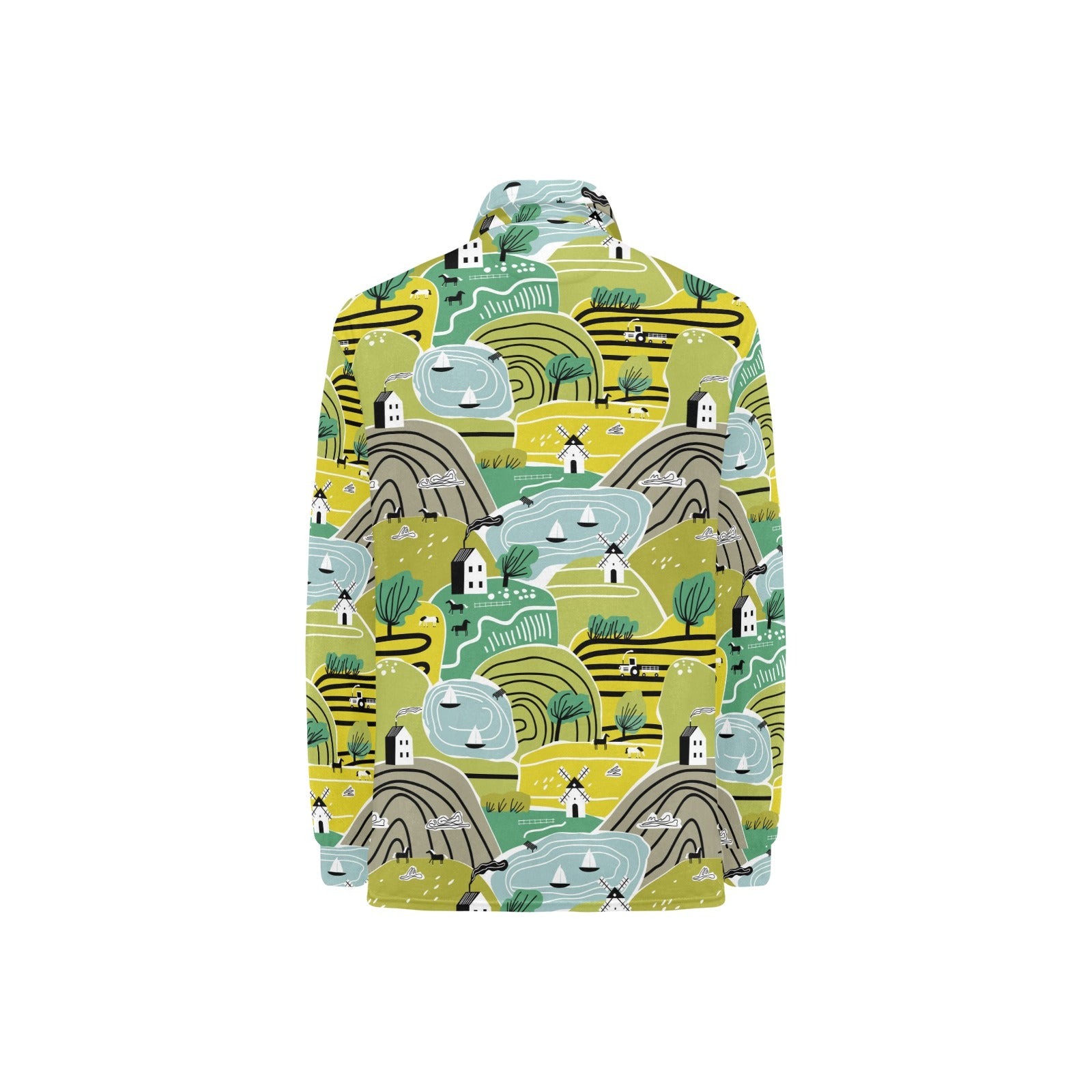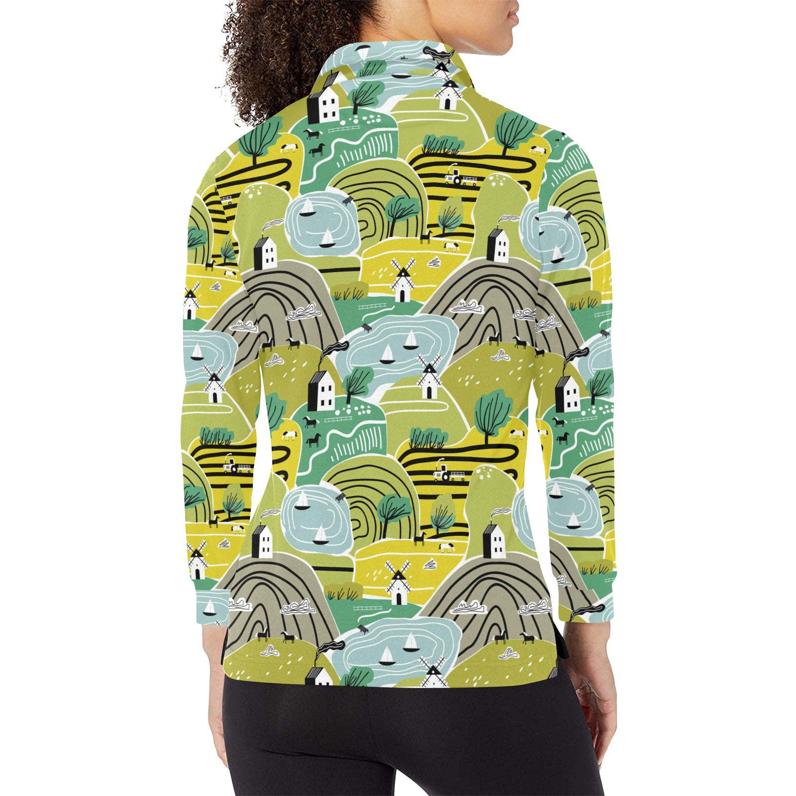 Hand drawn windmill pattern Women's Long Sleeve Polo Shirt
