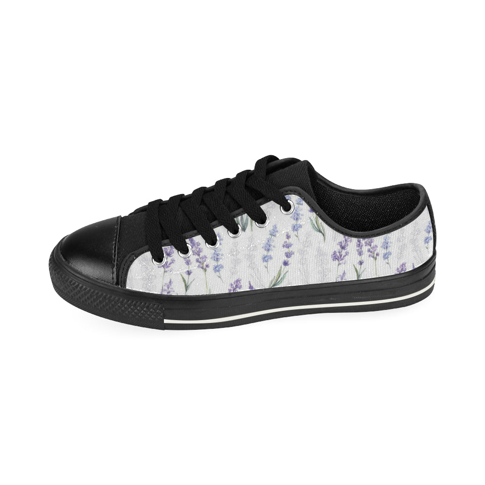 Hand painting Watercolor Lavender Men's Low Top Canvas Shoes Black