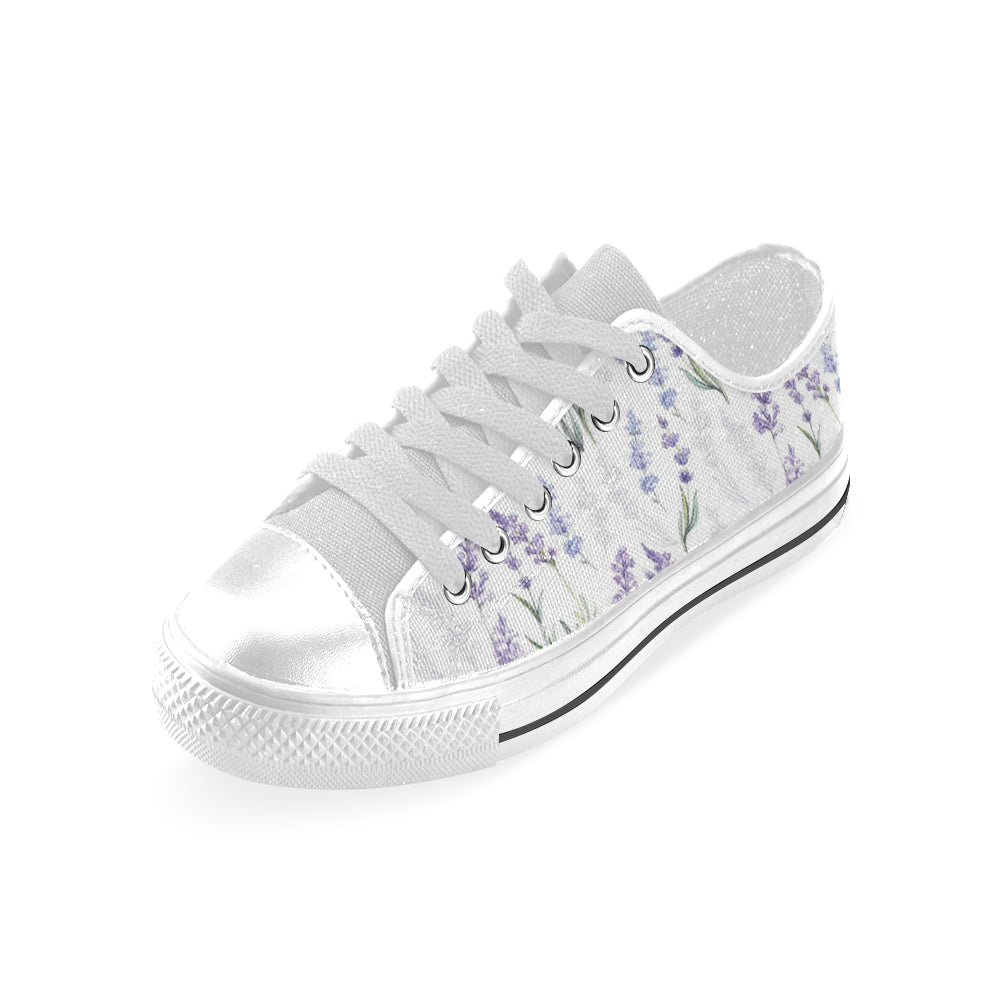 Hand painting Watercolor Lavender Men's Low Top Canvas Shoes White