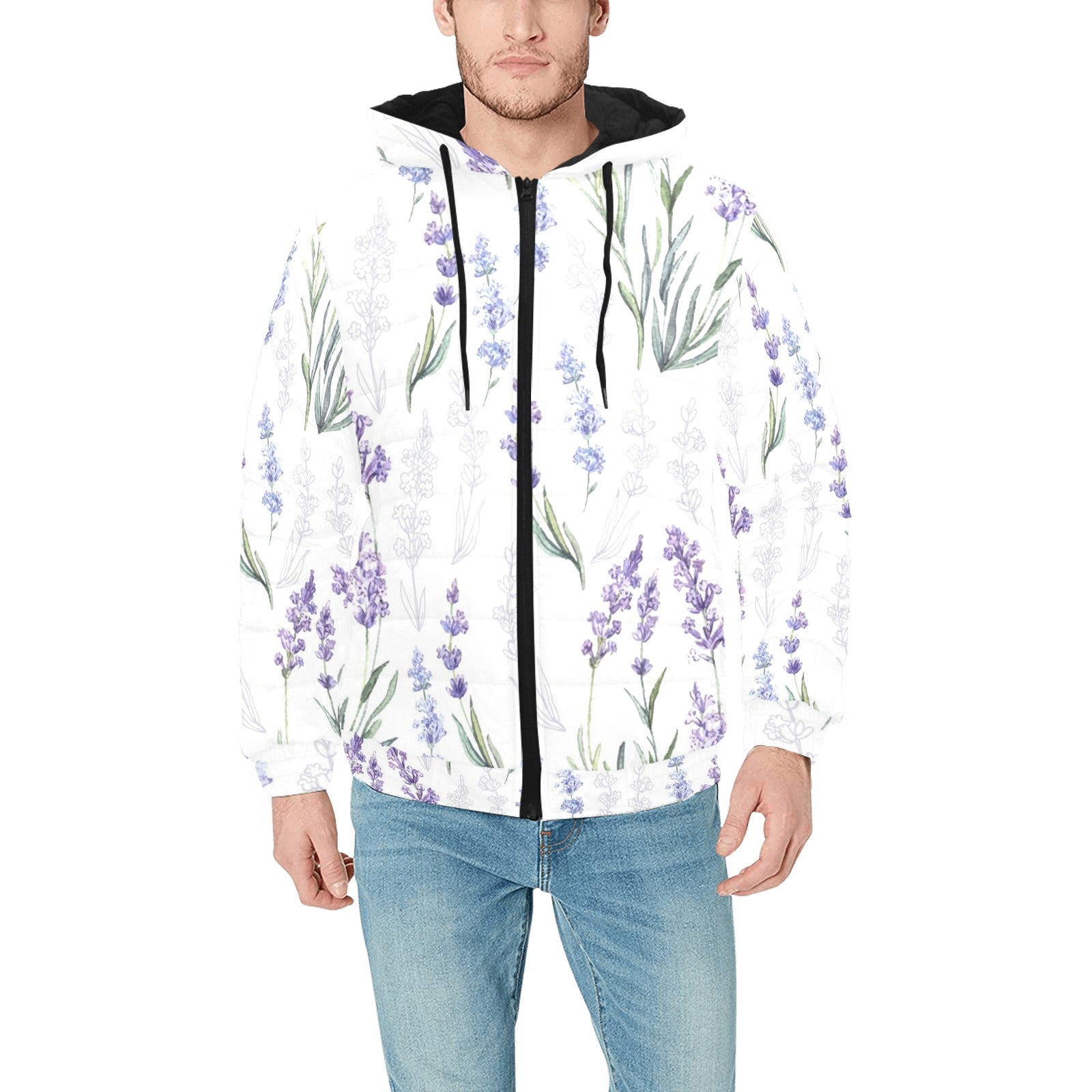 Hand painting Watercolor Lavender Men's Padded Hooded Jacket