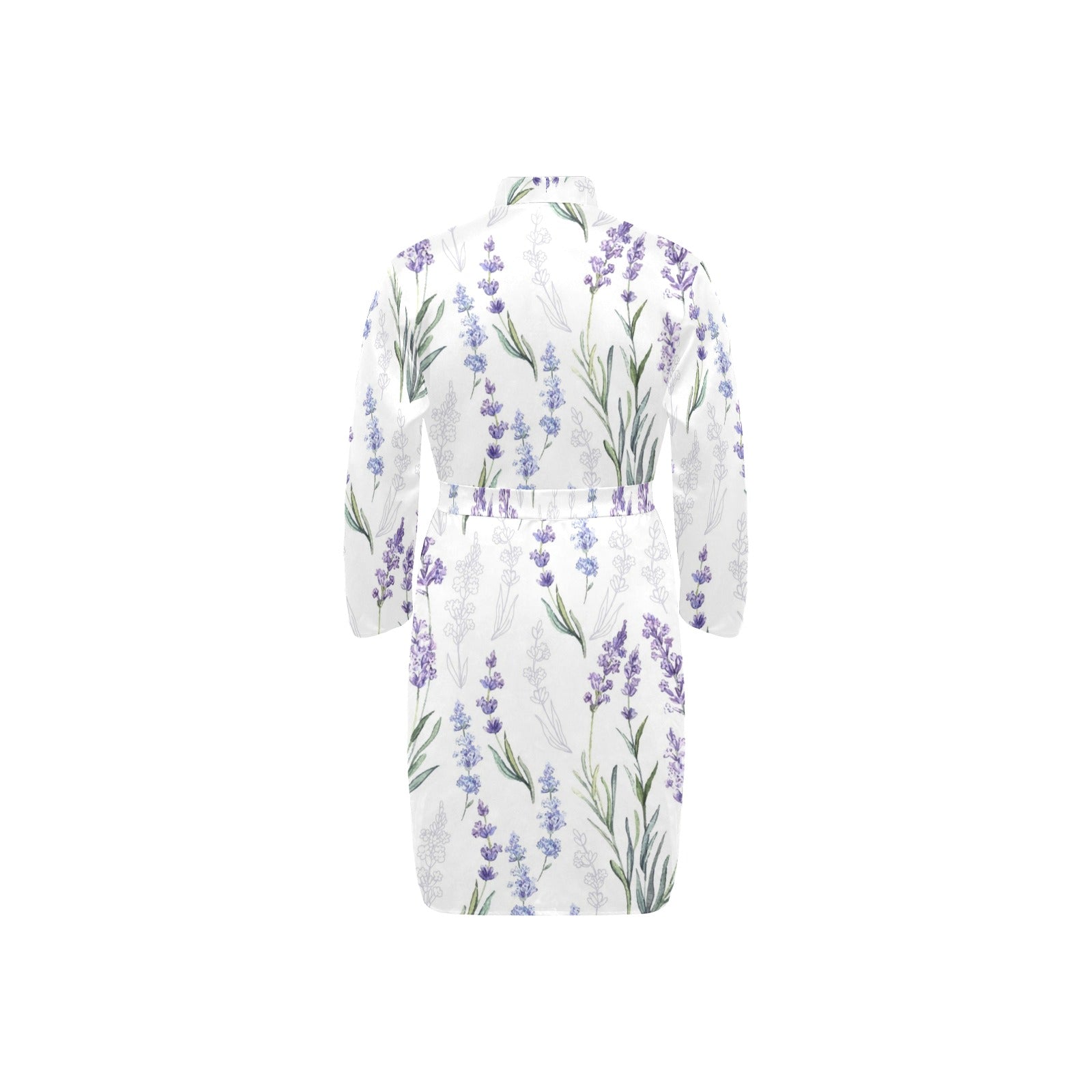 Hand painting Watercolor Lavender Men's Long Sleeve Belted Night Robe