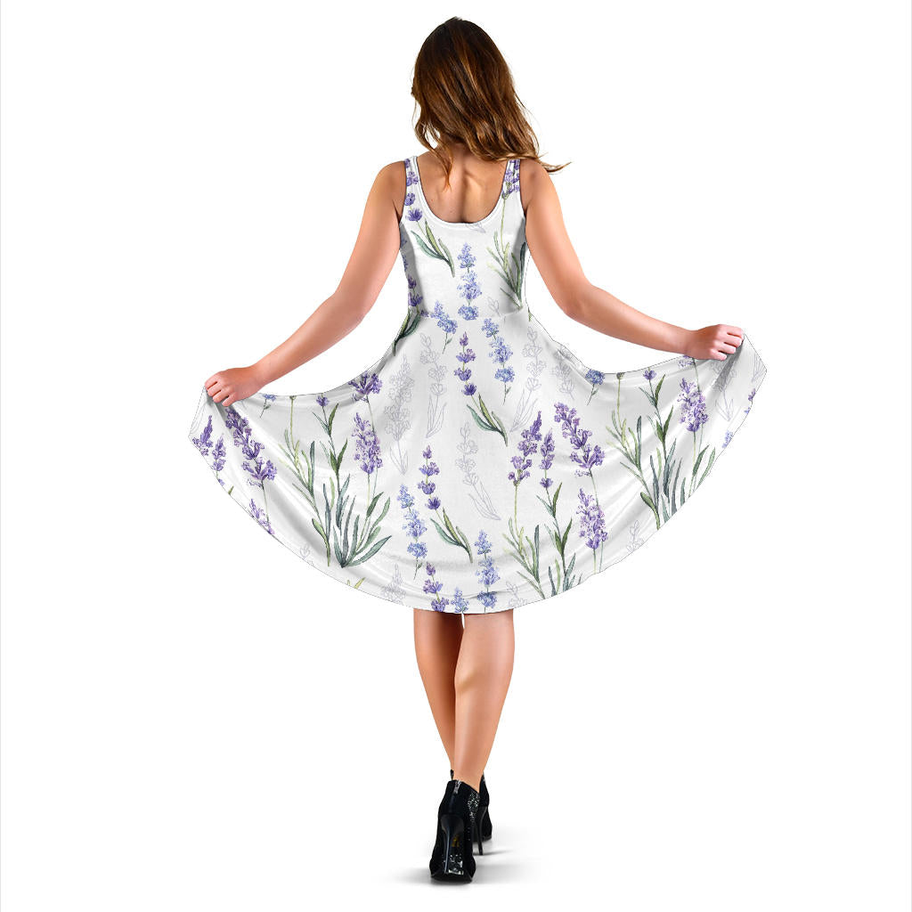 Hand painting Watercolor Lavender Sleeveless Midi Dress is a uniqued design and limited item. It made to order, hand printed, and sewn with love in our factory.