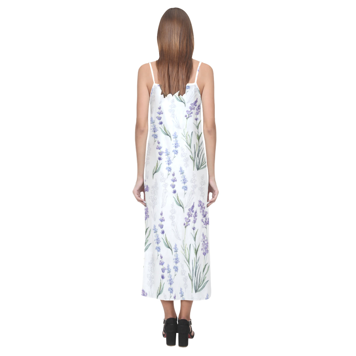 Hand painting Watercolor Lavender V-Neck Open Fork Long Dress is a uniqued design and limited item. It made to order, hand printed, and sewn with love in our factory.