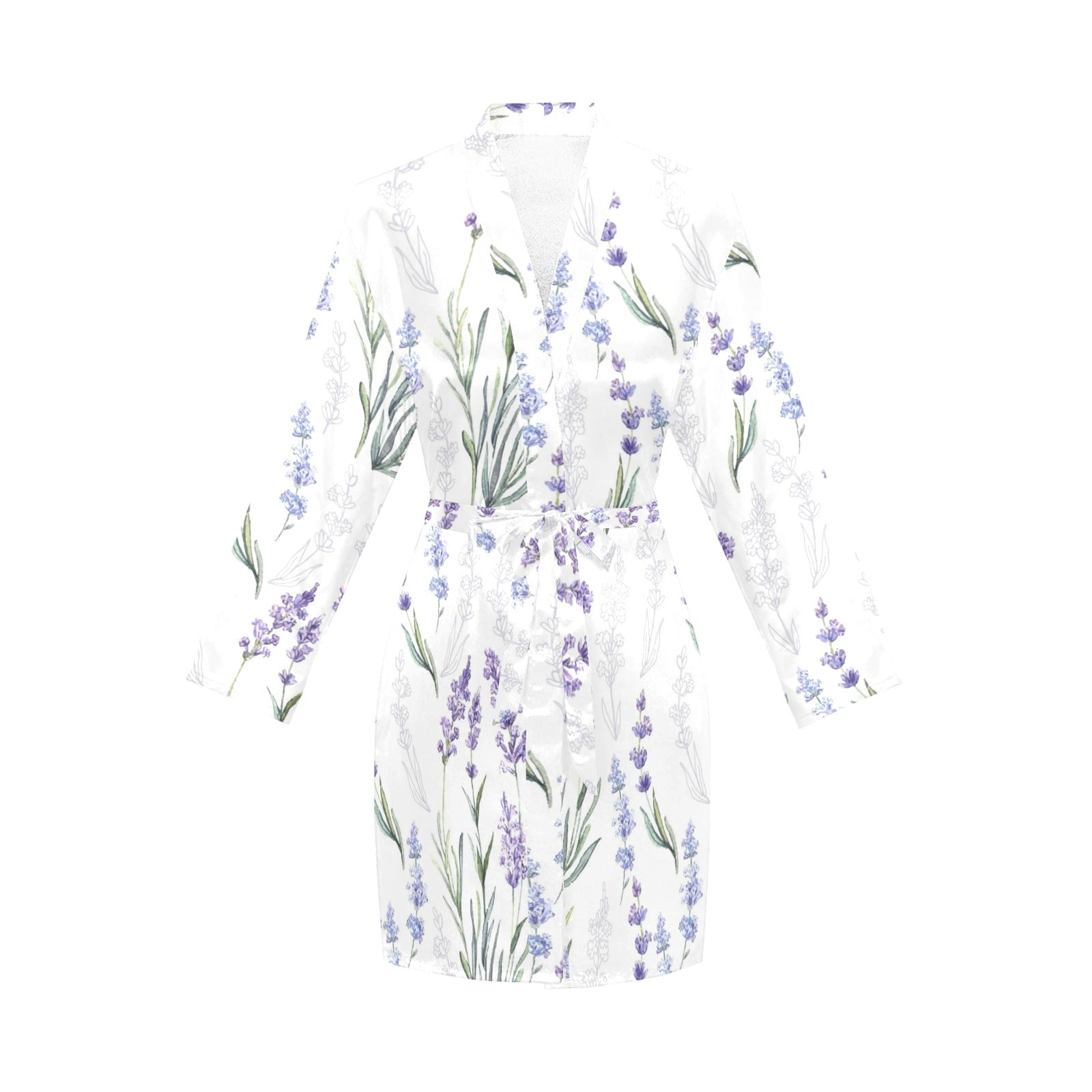 Hand painting Watercolor Lavender Women's Long Sleeve Belted Night Robe
