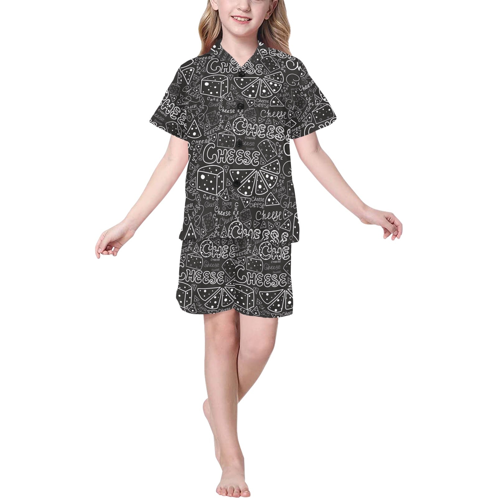 Handwritten cheese pattern Kids' Boys' Girls' V-Neck Short Pajama Set