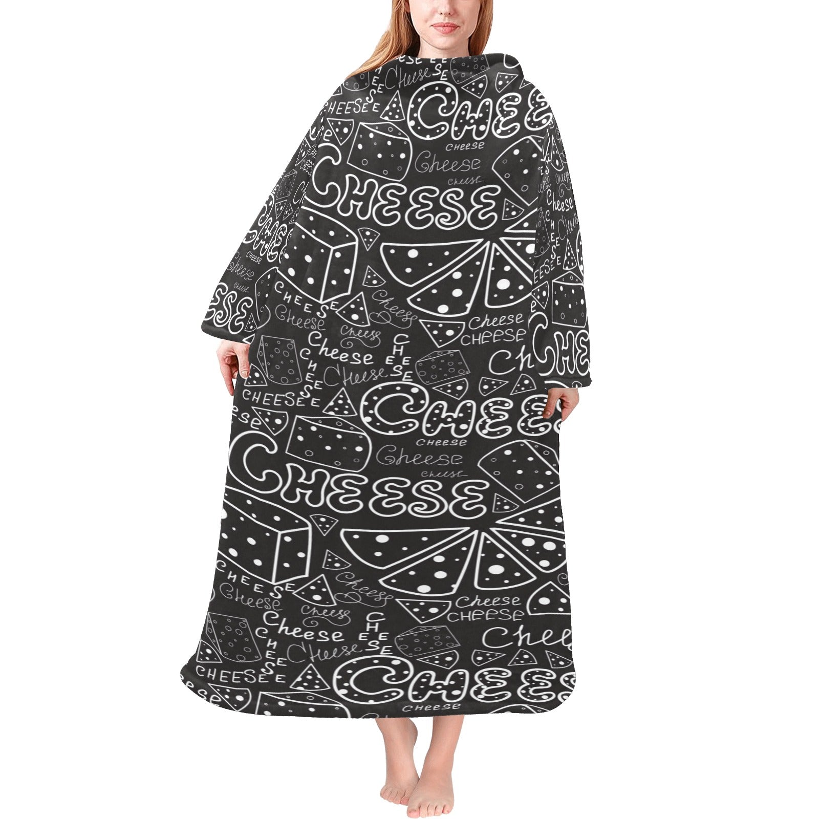Handwritten cheese pattern Blanket Robe with Sleeves