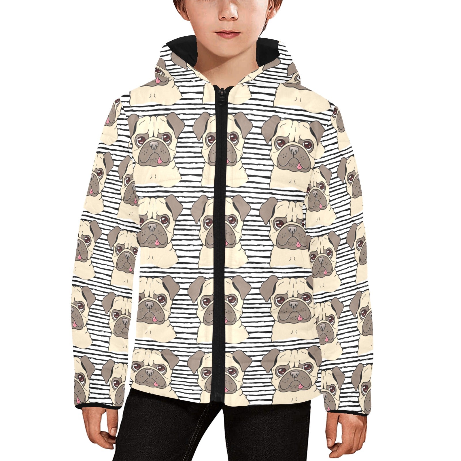 Happy pug pattern Kids' Boys' Girls' Padded Hooded Jacket