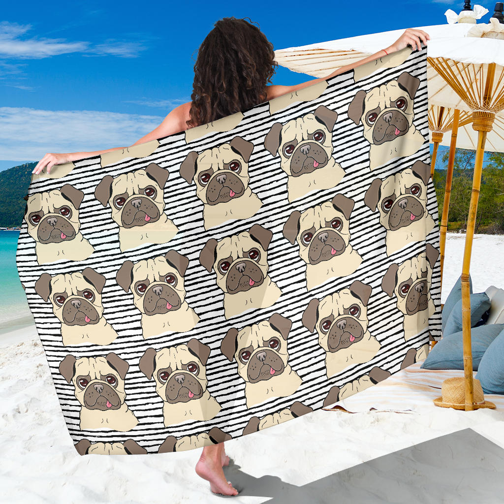 Happy Pug Pattern Sarong