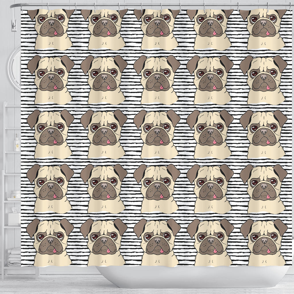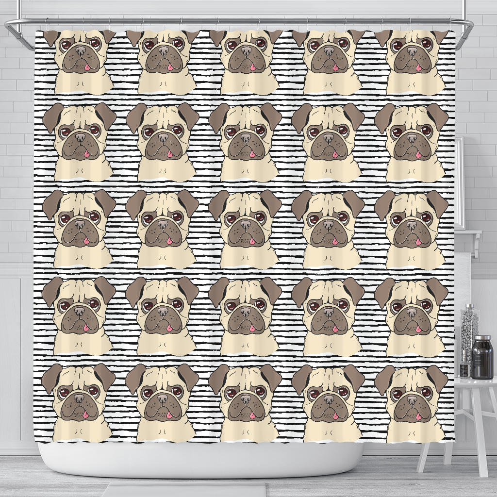 Happy Pug Pattern Shower Curtain Fulfilled In US