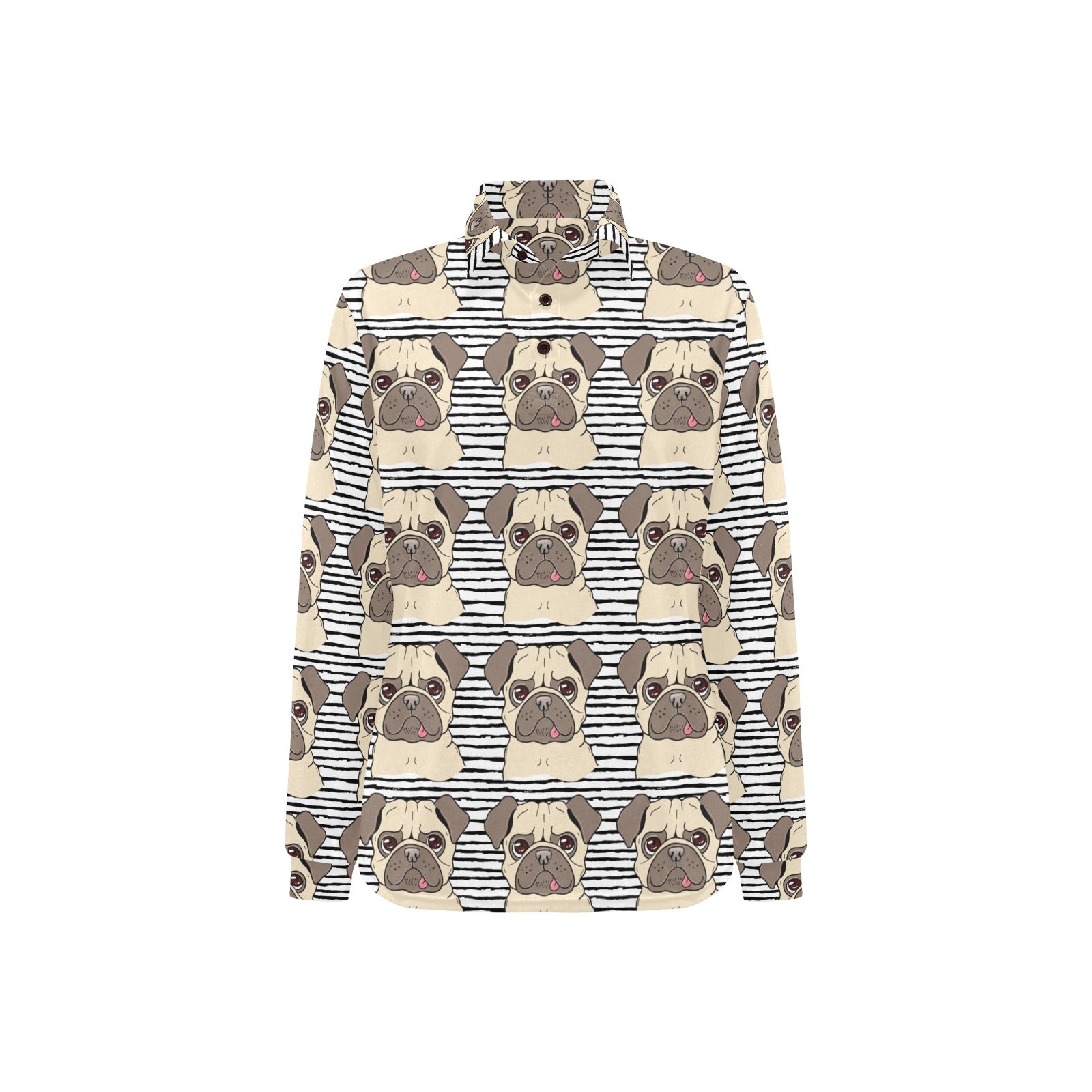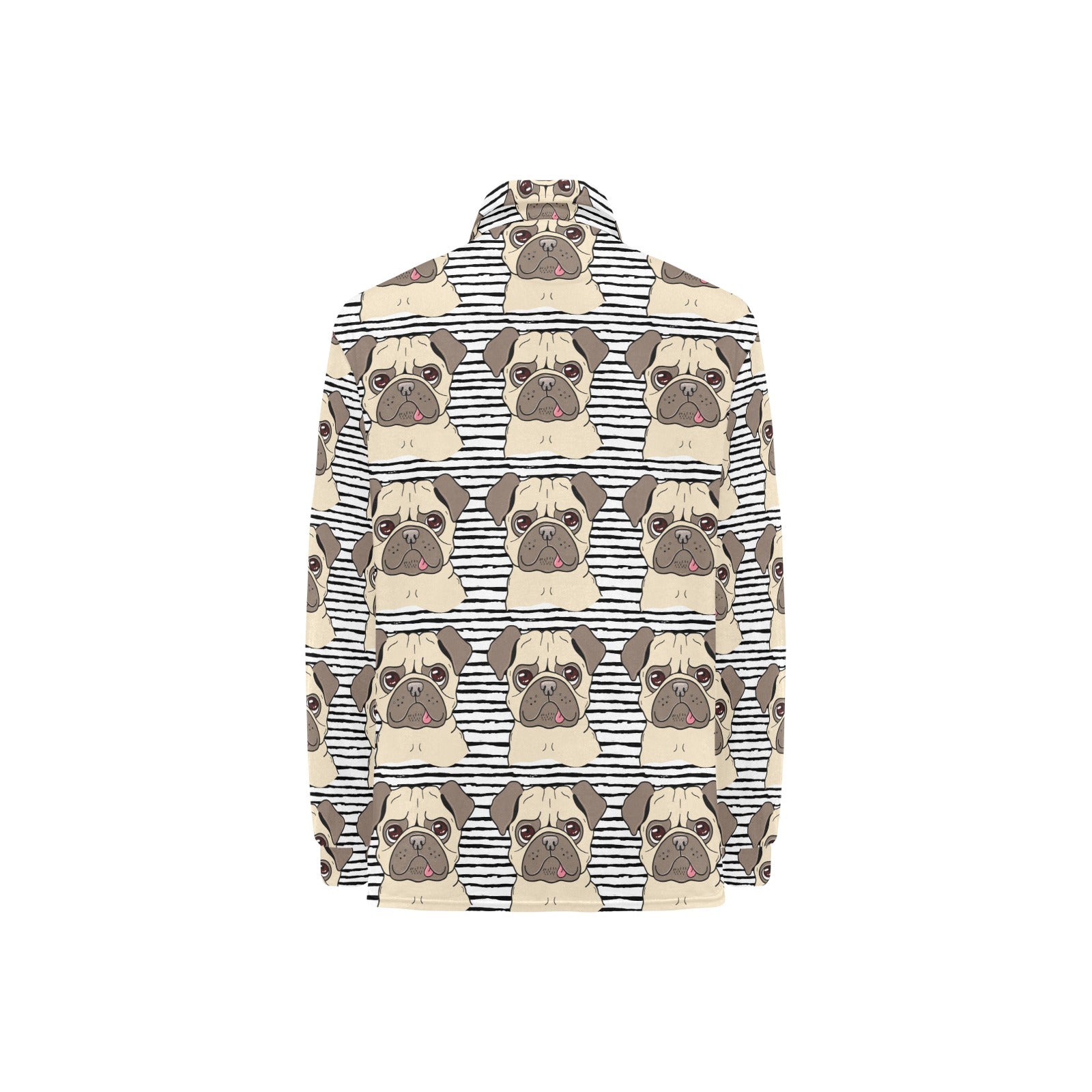 Happy pug pattern Women's Long Sleeve Polo Shirt