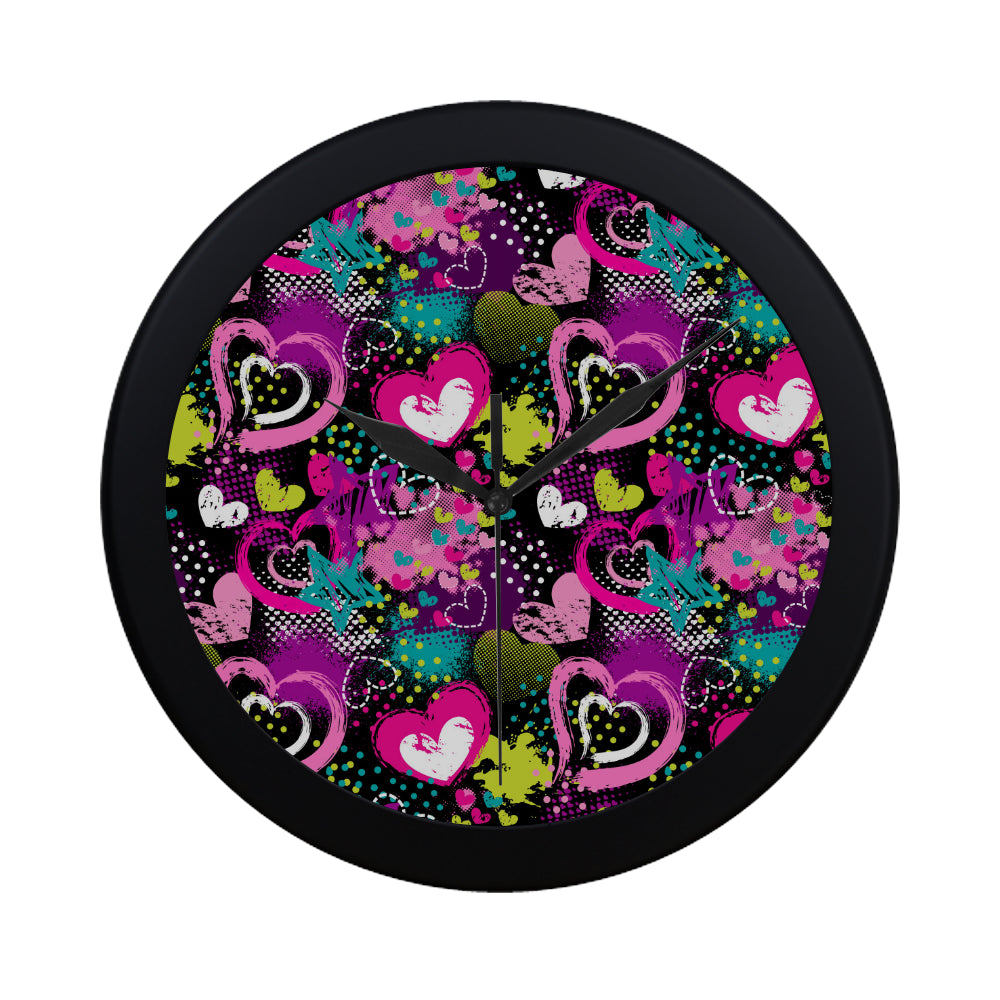heart dot wave star creative design pattern Elegant Black Wall Clock is a uniqued design and limited item. It made to order, hand printed, and sewn with love in our factory.