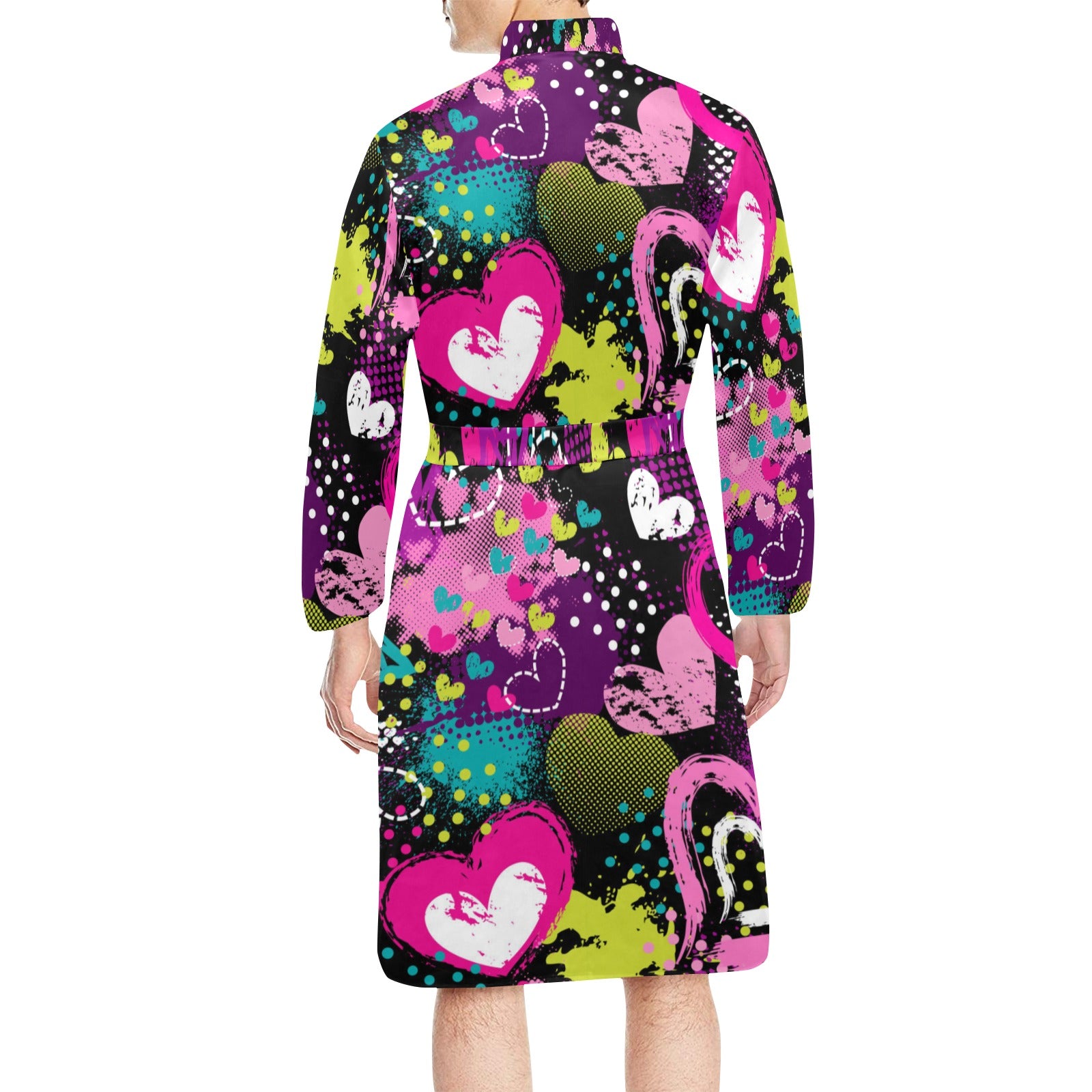 heart dot wave star creative design pattern Men's Long Sleeve Belted Night Robe