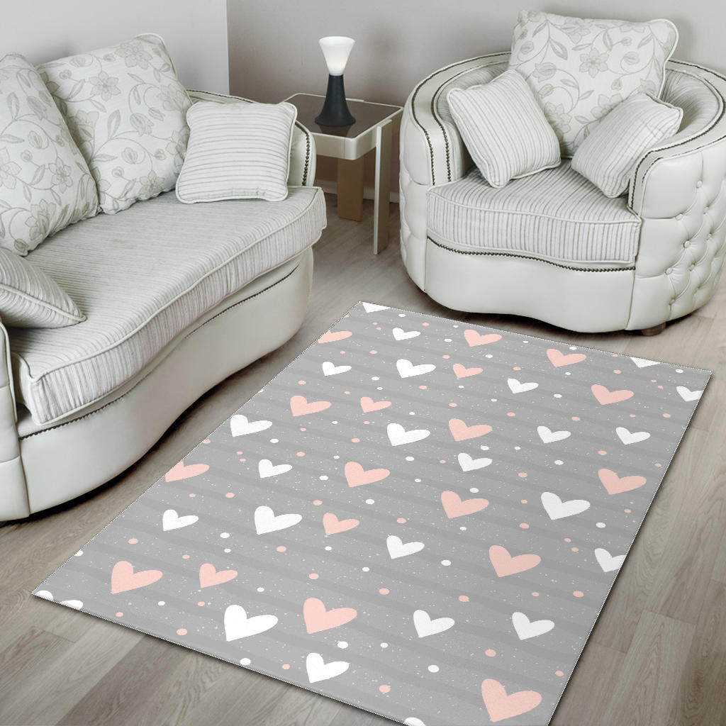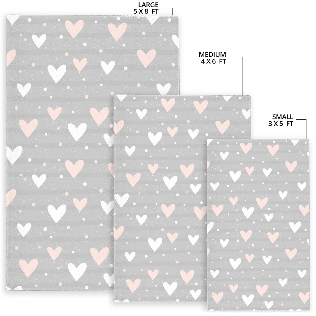 Heart pattern gray background Area Rug is a uniqued design and limited item. It made to order, hand printed, and sewn with love in our factory.
