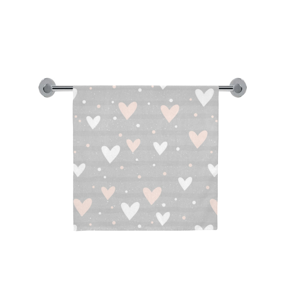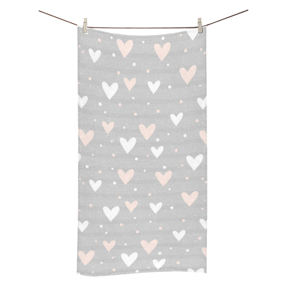Heart pattern gray background Bath Towel 30"x56" is a uniqued design and limited item. It made to order, hand printed, and sewn with love in our factory.