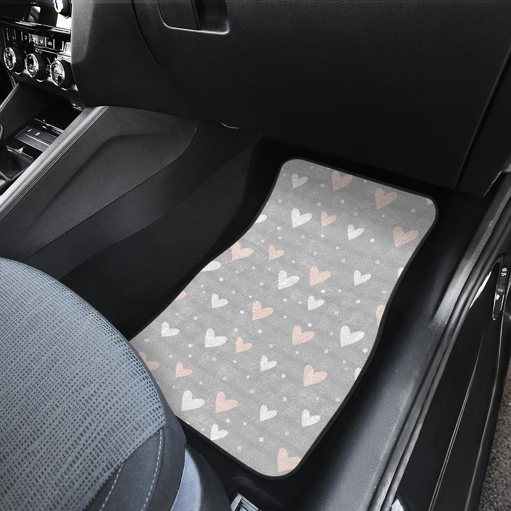 Heart pattern gray background Front Car Mats are uniqued design and limited item. It made to order, hand printed, and sewn with love in our factory.