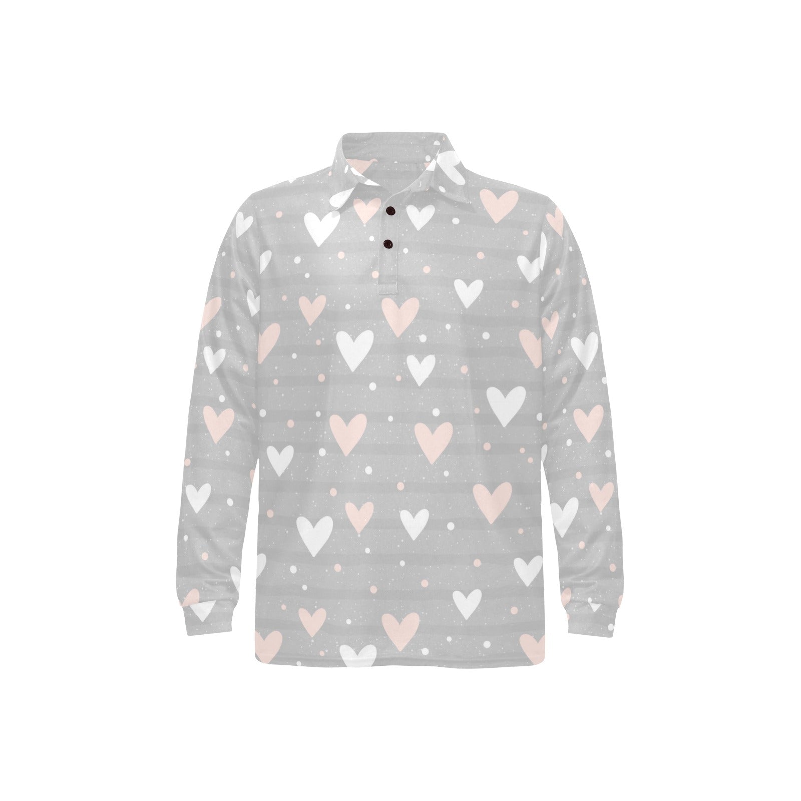 Heart pattern gray background Men's Long Sleeve Polo Shirt