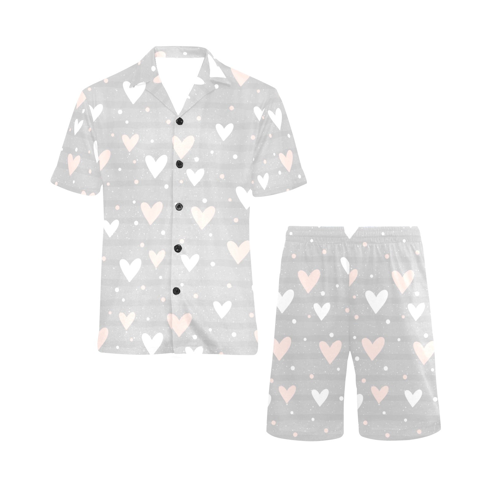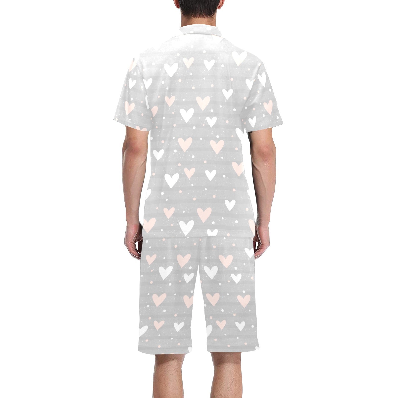 Heart pattern gray background Men's V-Neck Short Pajama Set