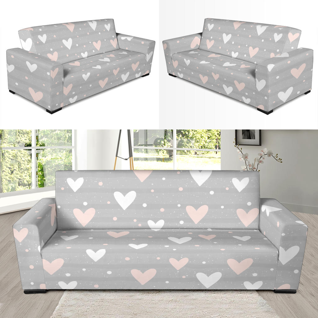 Heart Pattern Gray Background Sofa Slipcover