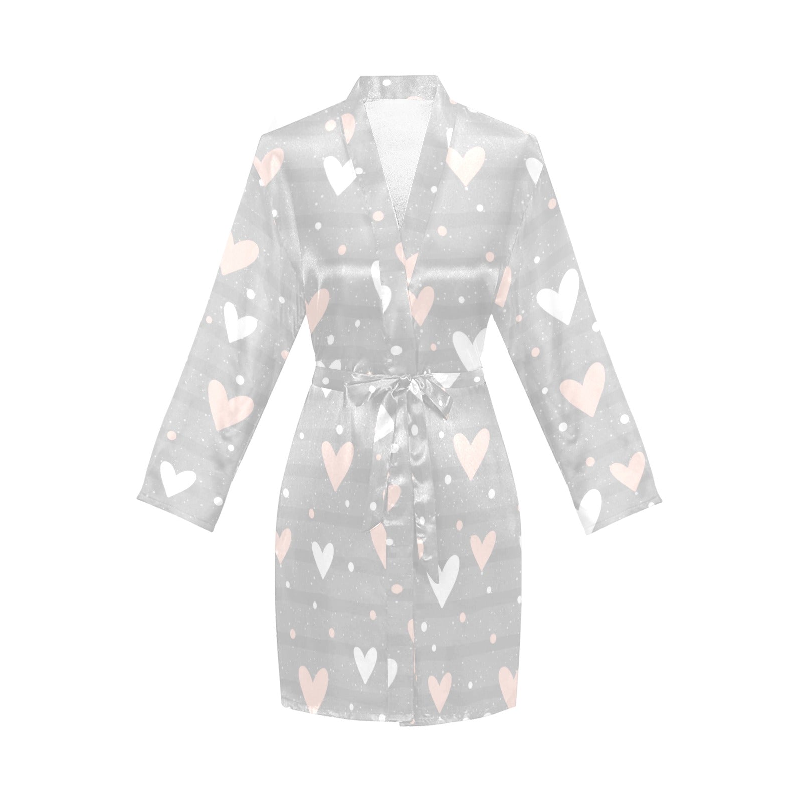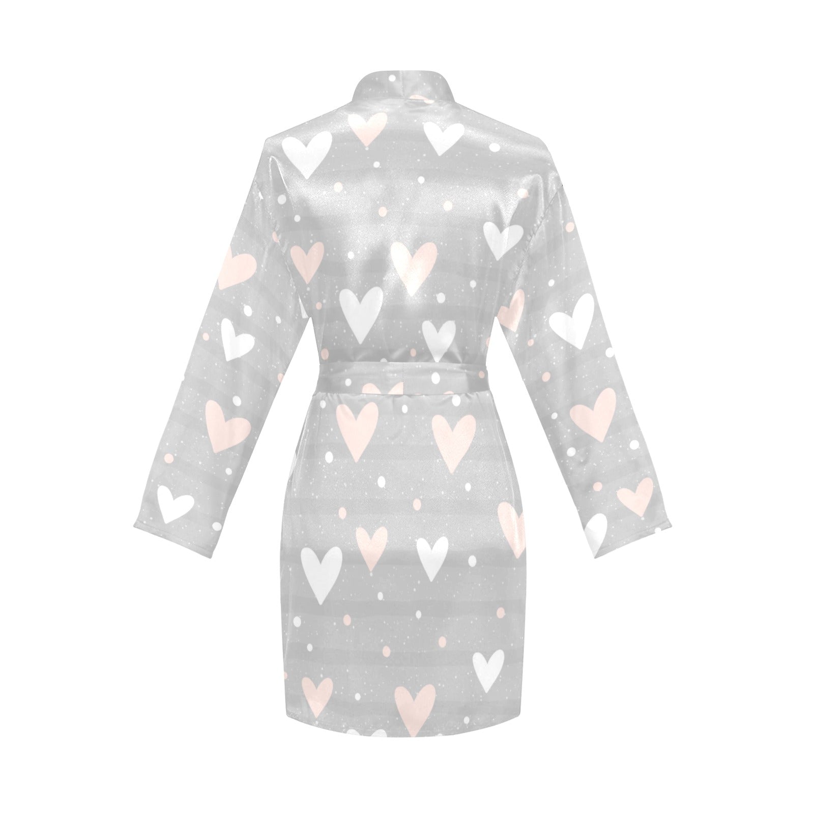 Heart pattern gray background Women's Long Sleeve Belted Night Robe