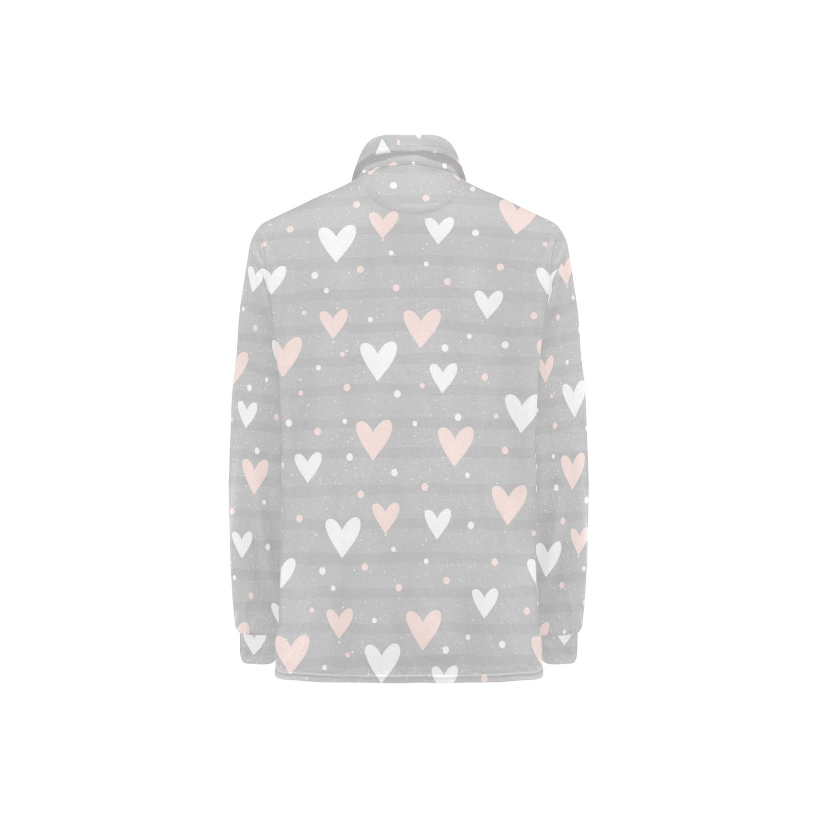Heart pattern gray background Women's Long Sleeve Polo Shirt