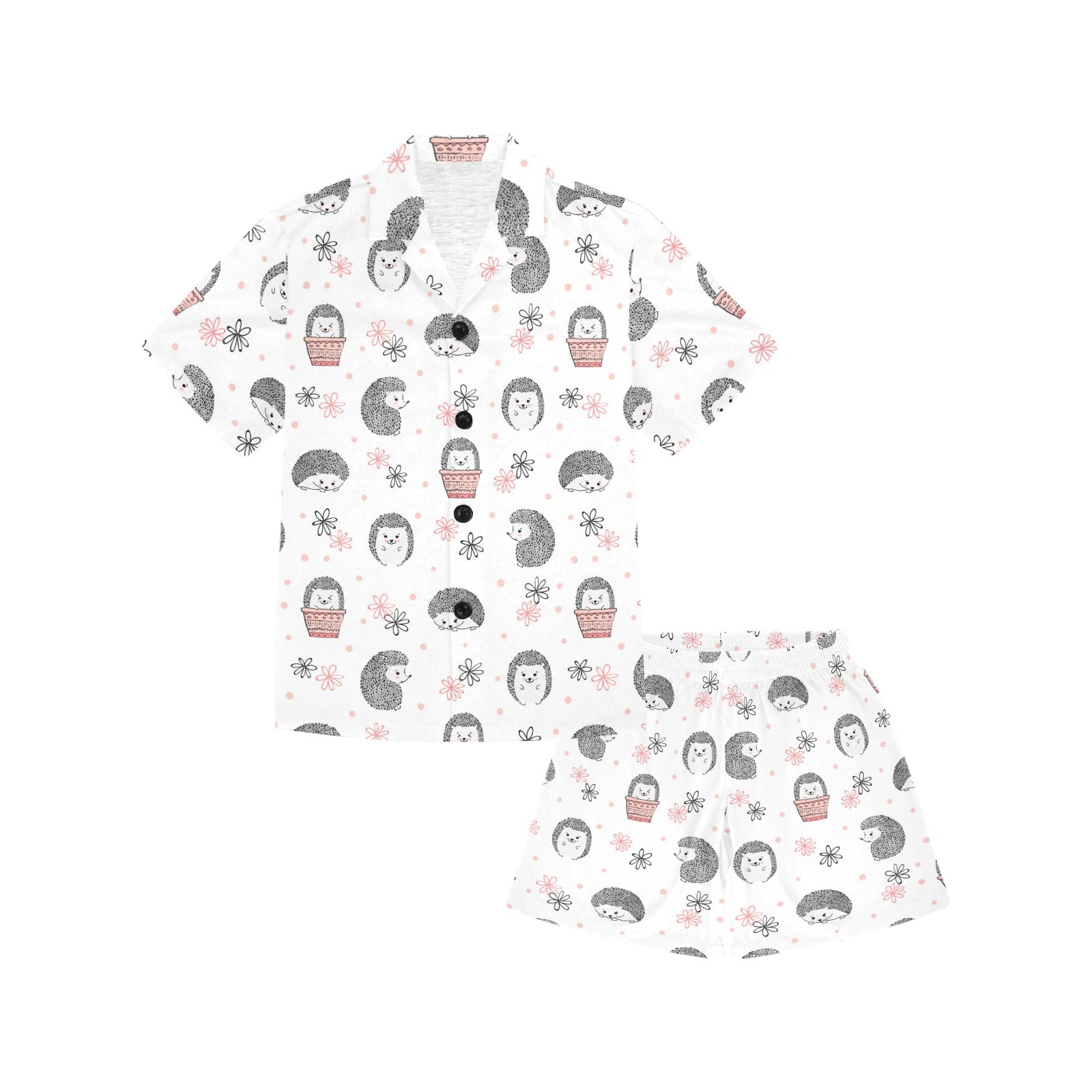 Hedgehog Pattern Print Design 02 Kids' Boys' Girls' V-Neck Short Pajama Set