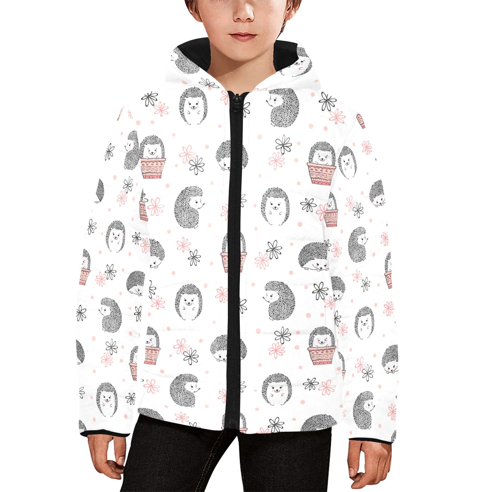 Hedgehog Pattern Print Design 02 Kids' Boys' Girls' Padded Hooded Jacket