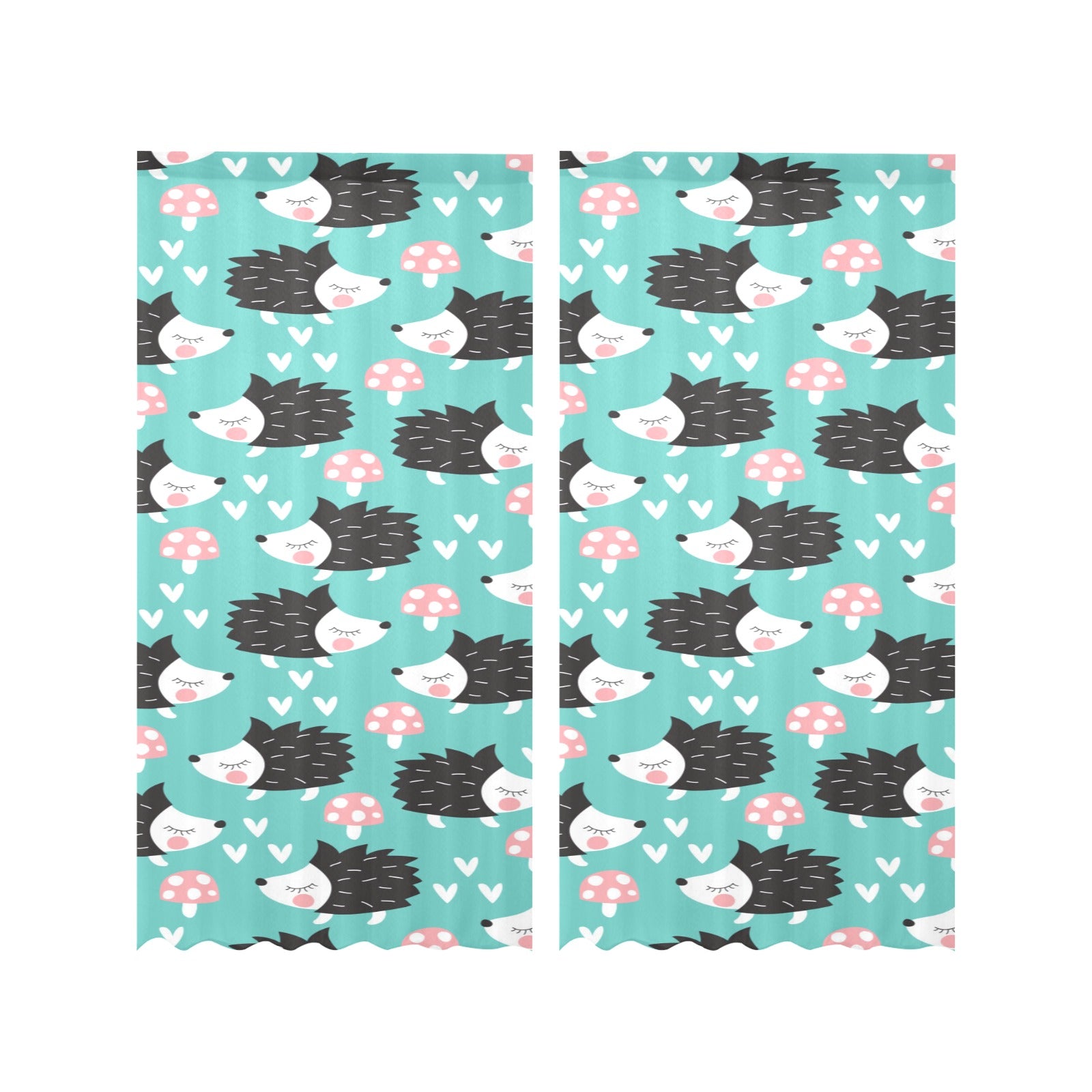 Hedgehog Pattern Print Design 03 Gauze Curtain