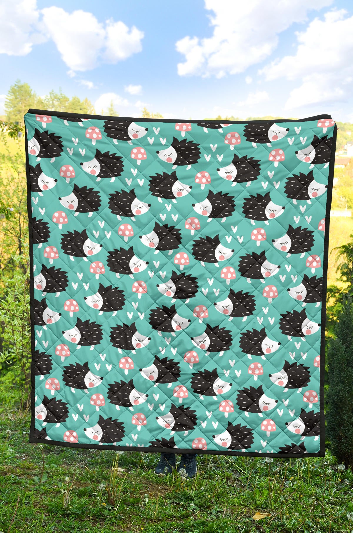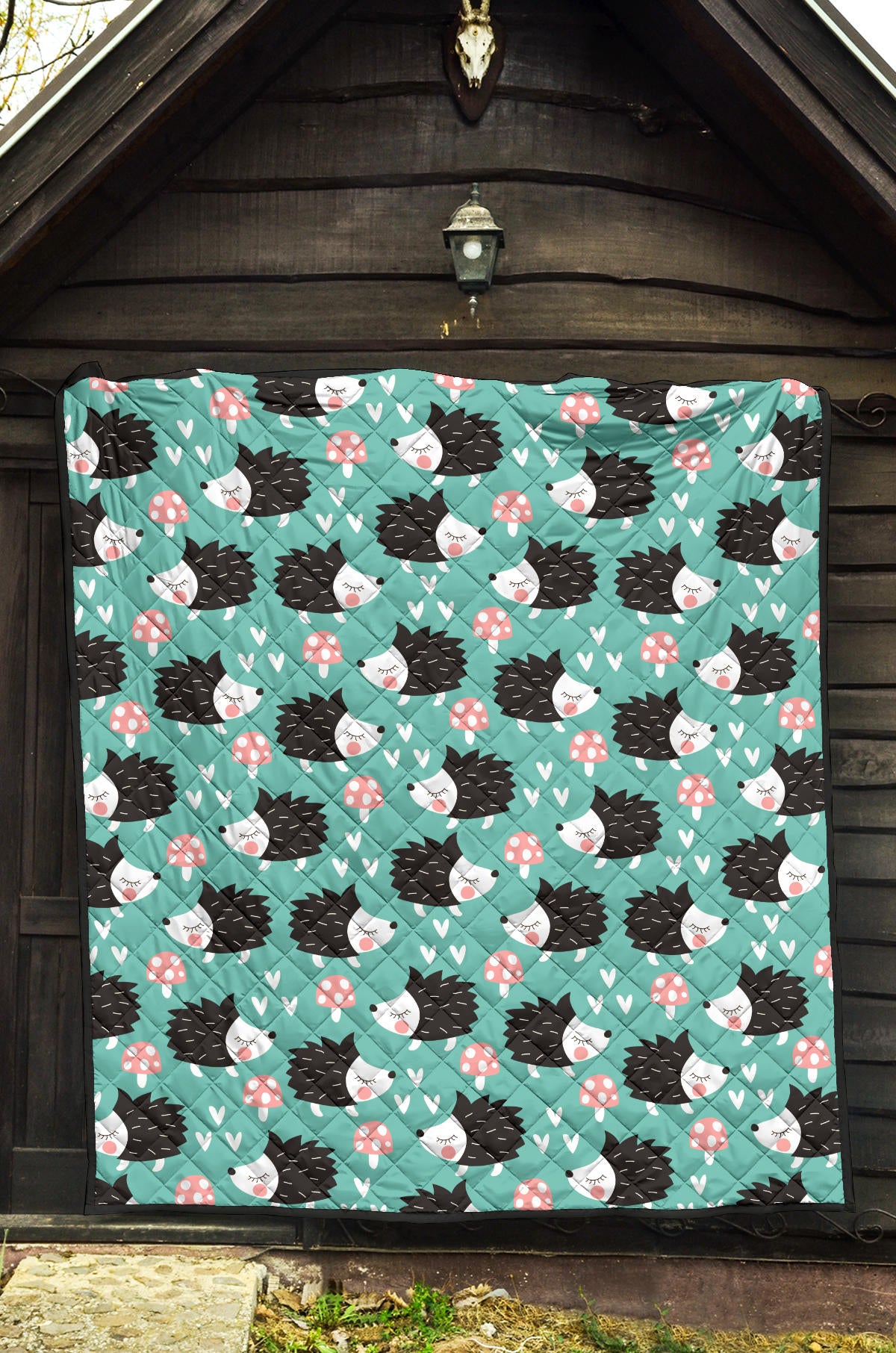 Hedgehog Pattern Print Design 03 Premium Quilt is a uniqued design and limited item. It made to order, hand printed, and sewn with love in our factory.