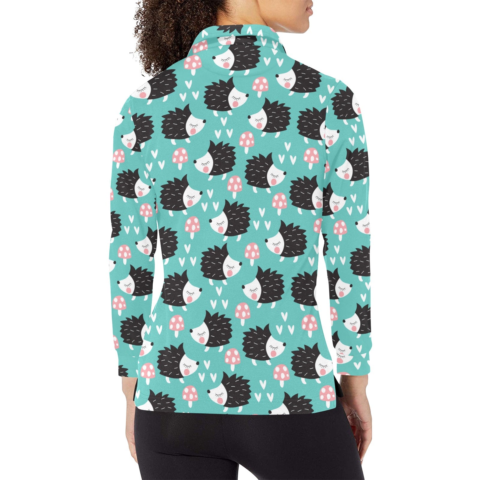 Hedgehog Pattern Print Design 03 Women's Long Sleeve Polo Shirt