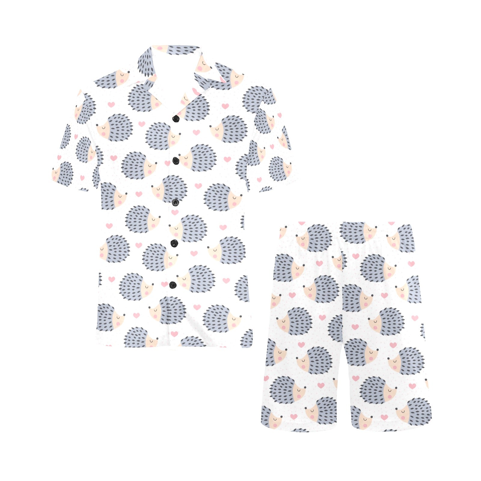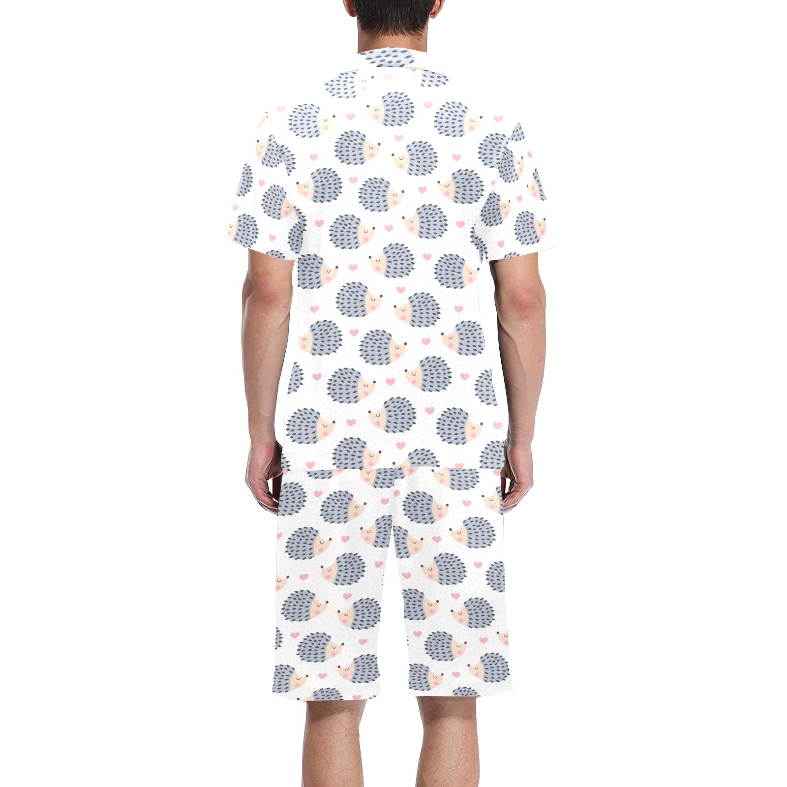 Hedgehog Pattern Print Design 04 Men's V-Neck Short Pajama Set